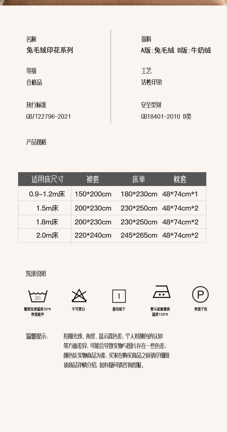 3、通州区市场监督局友情提醒,近期涉及到床上用品不褪色不掉毛不缩水的投诉和以世界知名品牌图案为面料的床品举报较多。请各商家自检自查,对照整改或进行下架处理。