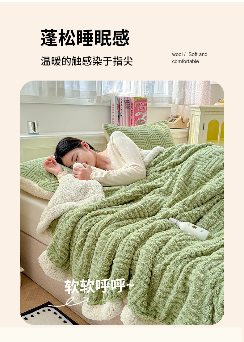 (总)默忆 2025新款A类保暖加厚仿兔毛毯毯子,米白,粉,咖色,蓝灰,绿,紫色