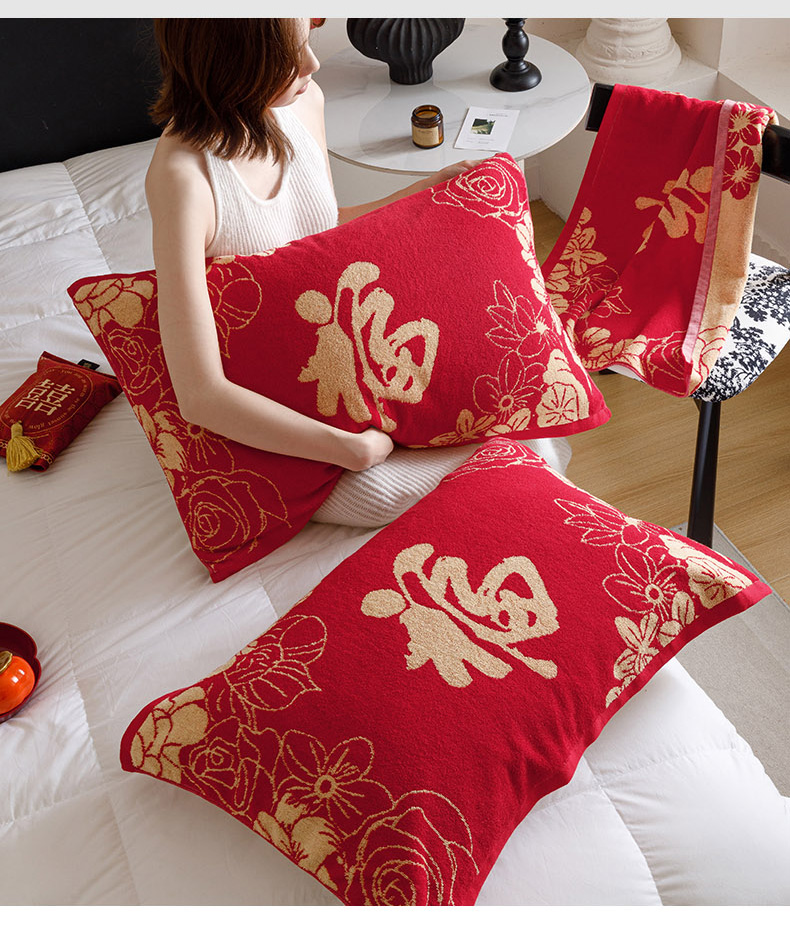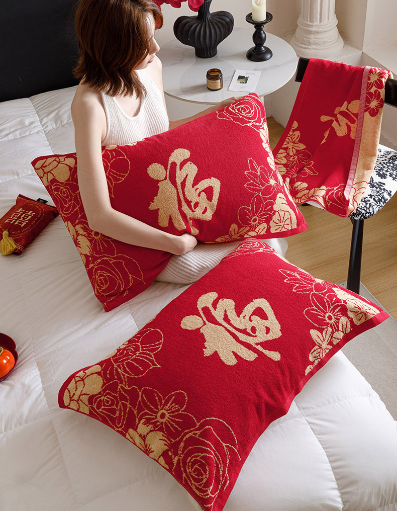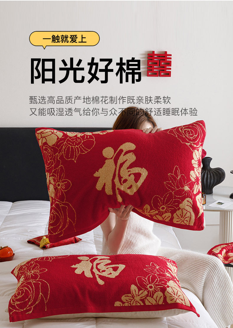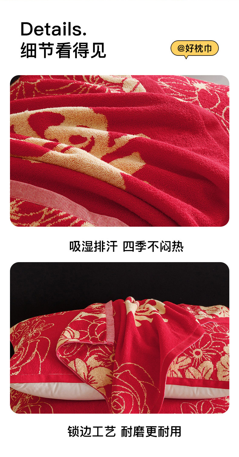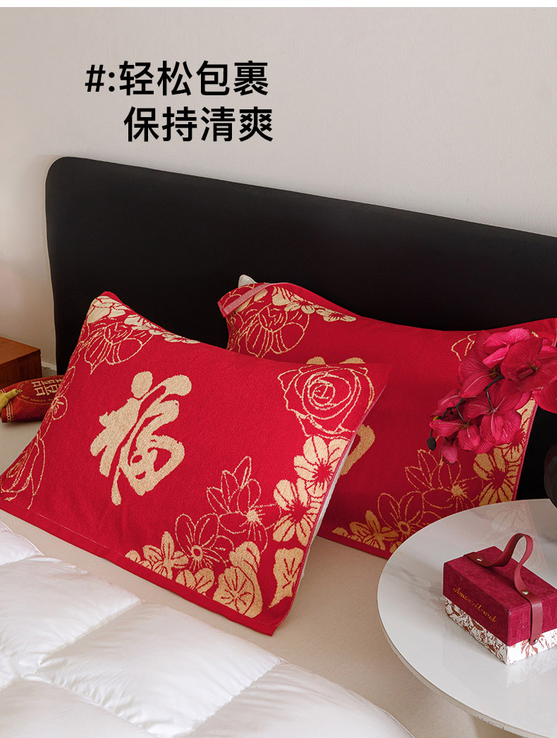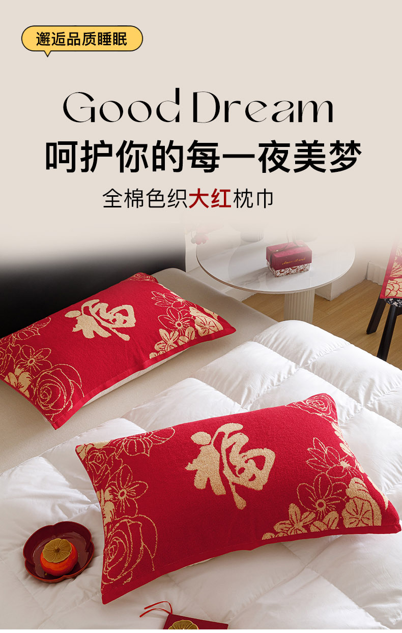 (总)爱港家纺 2025专版新款老式全棉大红枕巾结婚枕巾喜庆百福枕巾,八方来财,锦绣花福,龙凤呈祥,童话喜韵,吾家有喜,永结同心,组合