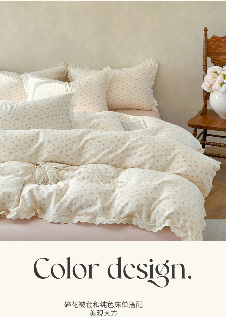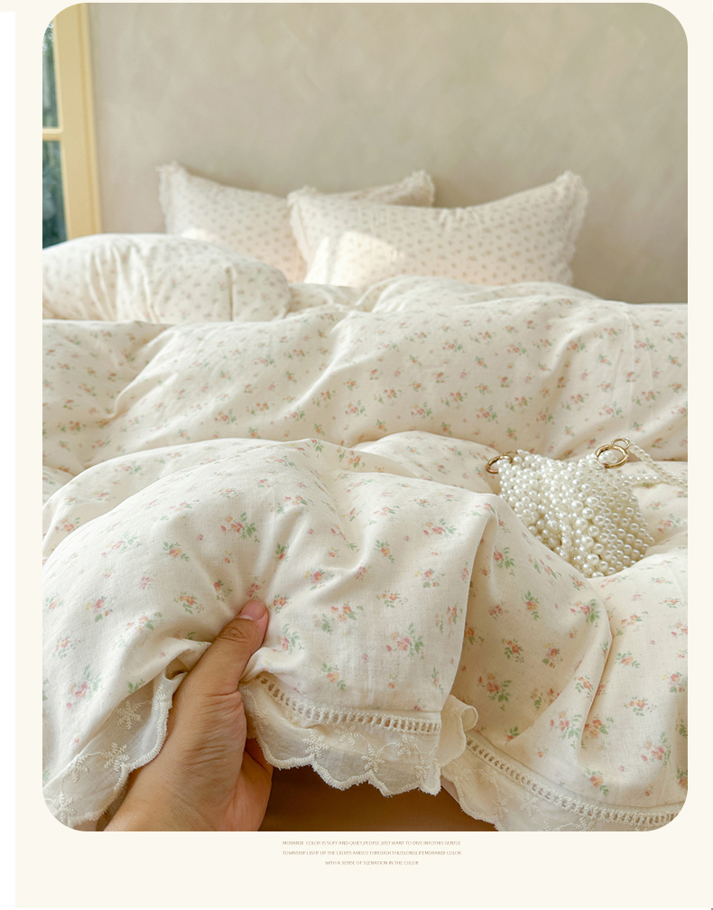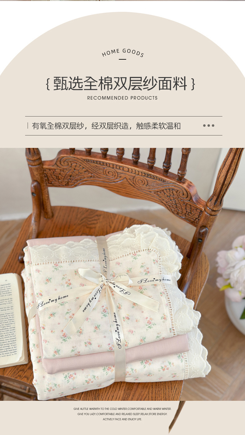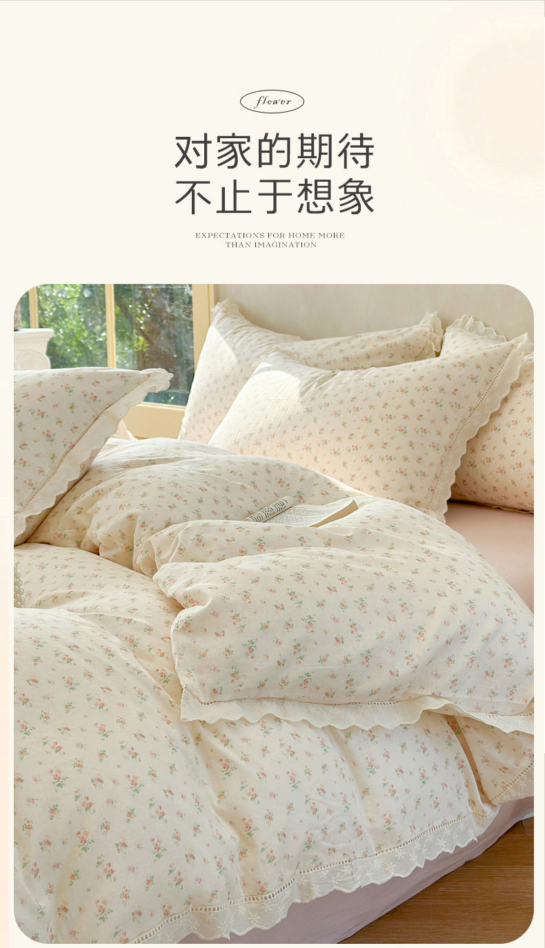 当前位置: 91家纺网 > 商品网购 > 床品套件 > 四件套 > 双层纱四件套 > 麦伦家居 2025新款A类全棉有氧双层纱印花系列四件套-镂空系列 漫语米