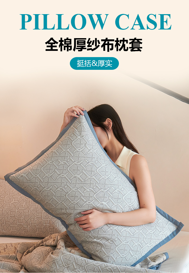 棠薇家纺 2025新款全棉纱布枕套厚枕套 雅格灰