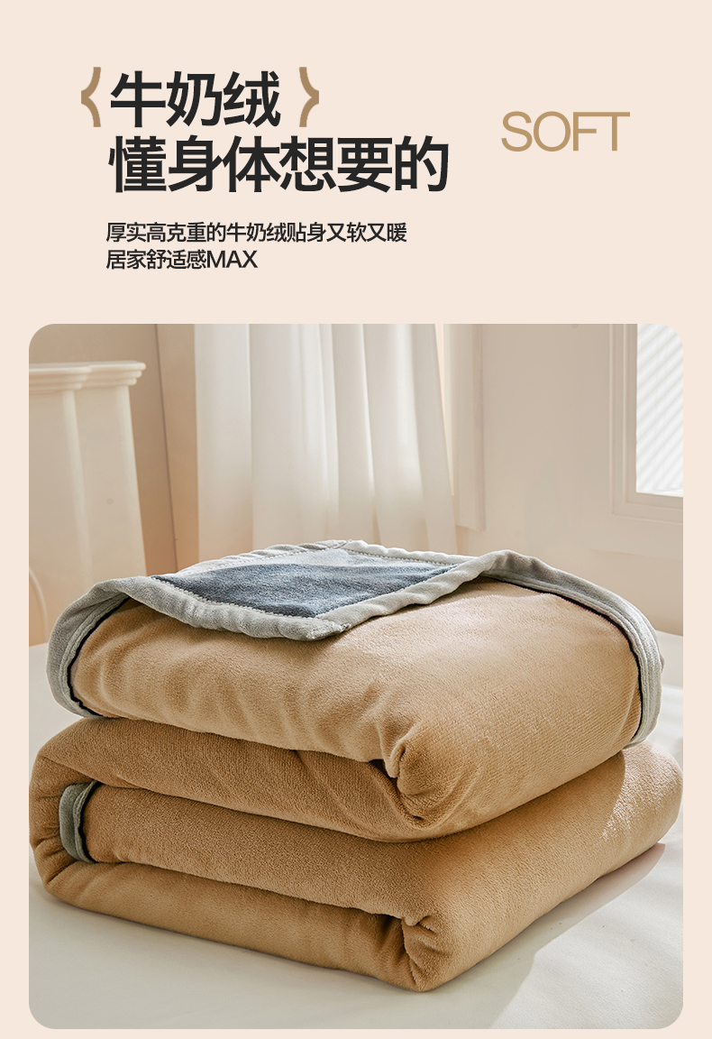 (总)天之澜家纺 2025新款多功能牛奶绒单被套盖毯(不含被芯),典雅白,豆绿,卡其,墨玉蓝,烟灰,胭脂粉