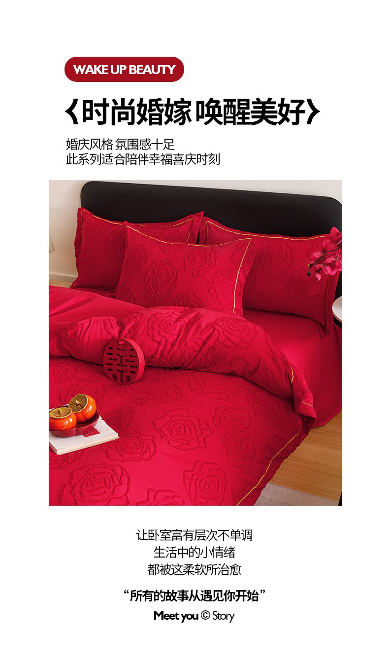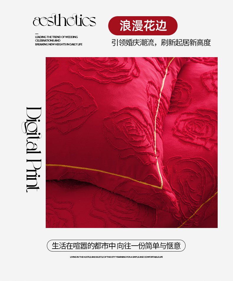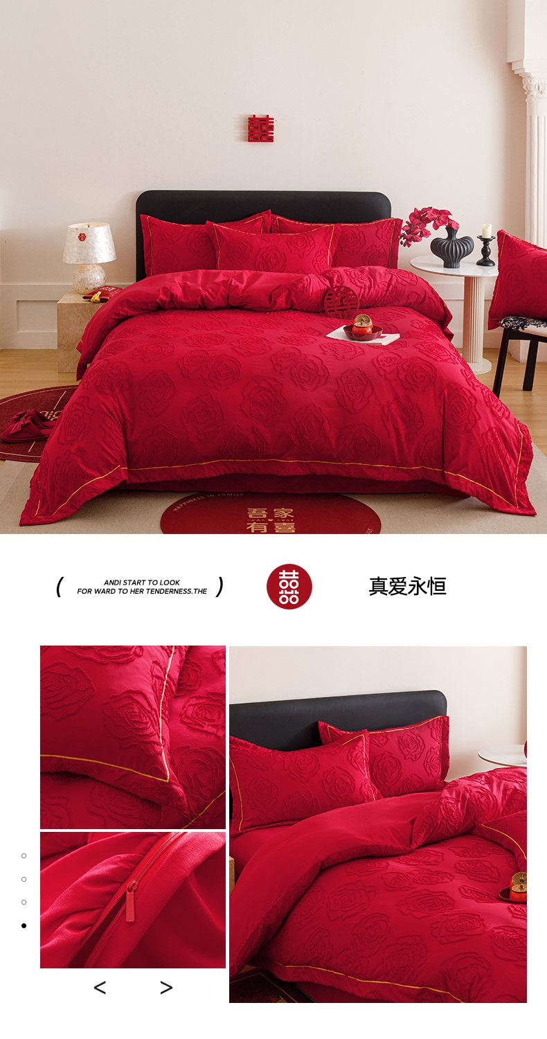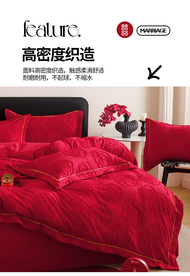 (总)千希家纺 2025新款加厚斜纹剪花工艺婚庆四件套(提供买家秀),玫瑰报喜,真爱永恒