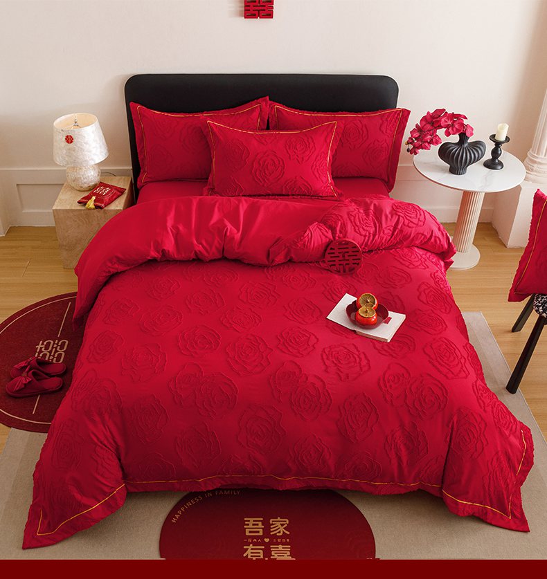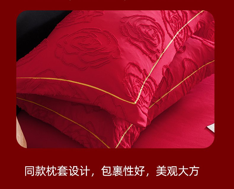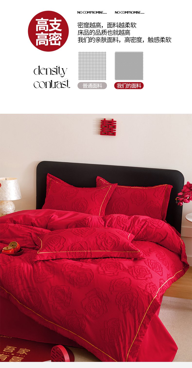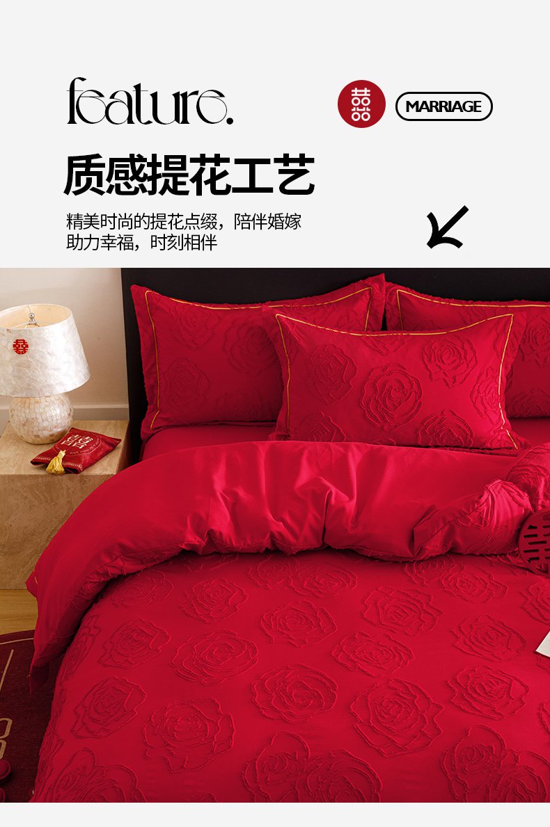 (总)千希家纺 2025新款加厚斜纹剪花工艺婚庆四件套(提供买家秀),玫瑰报喜,真爱永恒