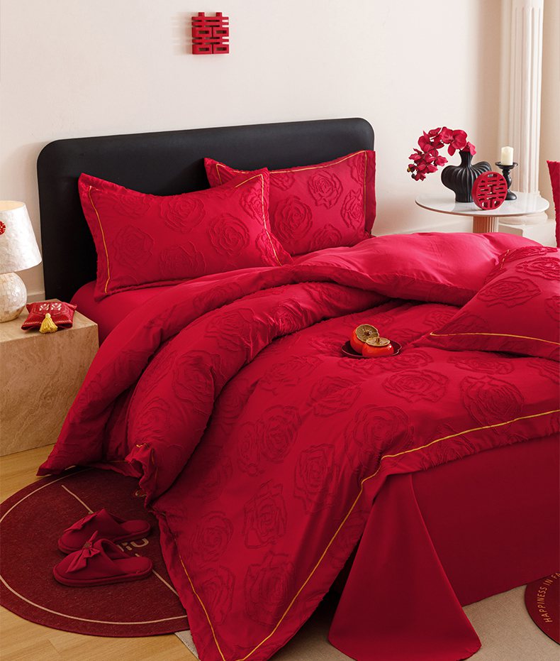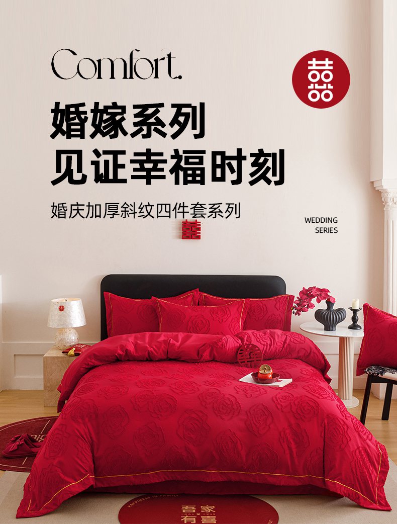 (总)千希家纺 2025新款婚庆系列高克重工艺款提花布刺绣四件套,浪漫婚礼,新婚大喜