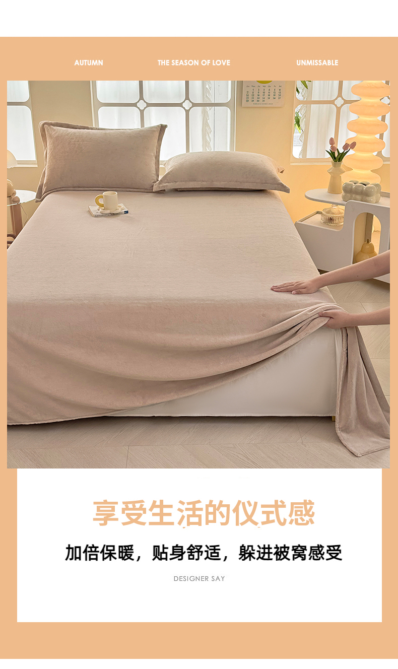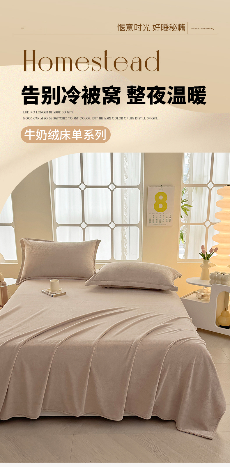 商品名称:悠米悠家 2025新款保暖舒适牛奶绒单品床单 卡其色