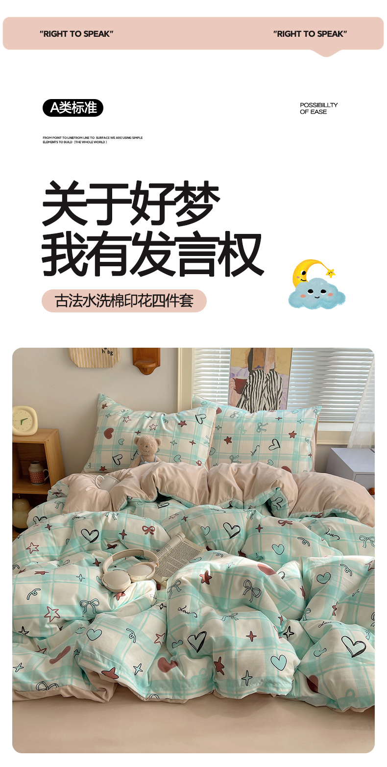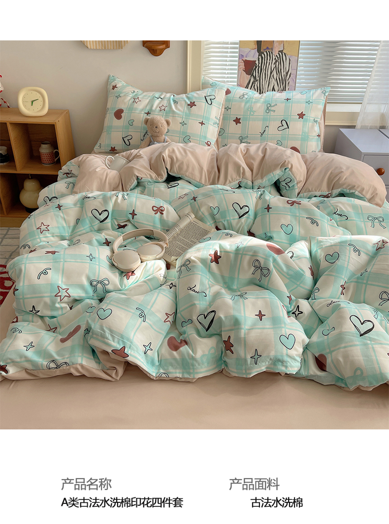 当前位置: 91家纺网 > 商品网购 > 床品套件 > 四件套 > 水洗棉四件套 > 星禾优选 2025新款A类仿棉四件套古法水洗棉小清新印花四件套单被套系列(提供买家秀) 薄荷奶咖