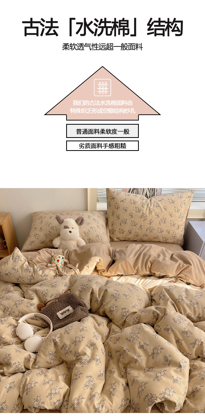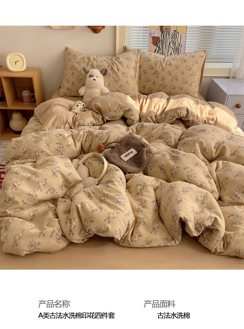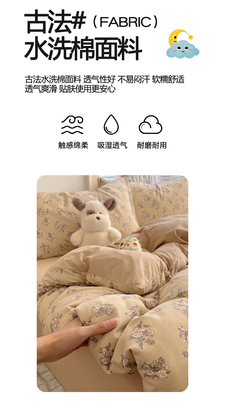 当前位置: 91家纺网 > 商品网购 > 床品套件 > 四件套 > 水洗棉四件套 > 星禾优选 2025新款A类仿棉四件套古法水洗棉小清新印花四件套单被套系列(提供买家秀) 余烬-咖