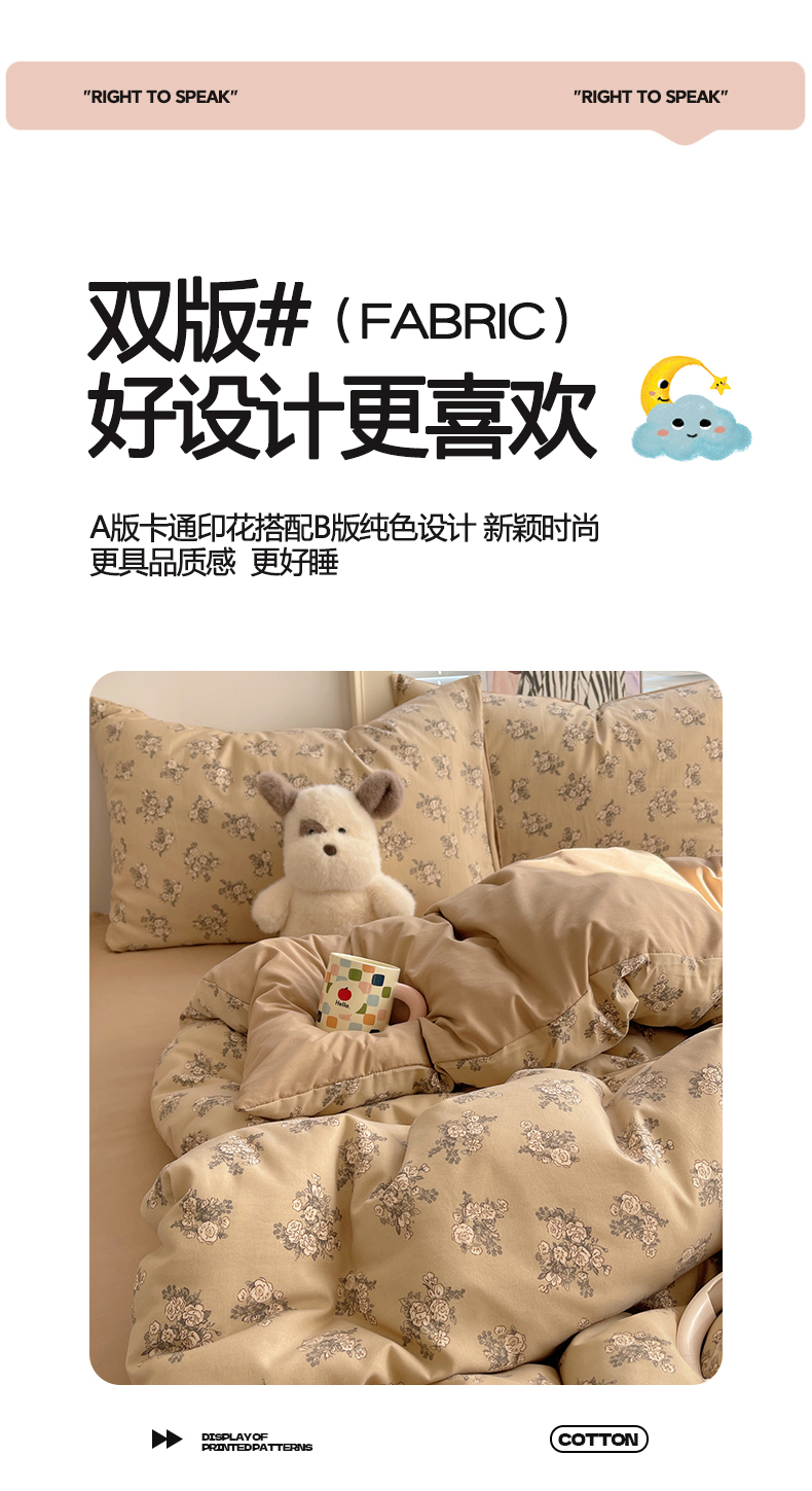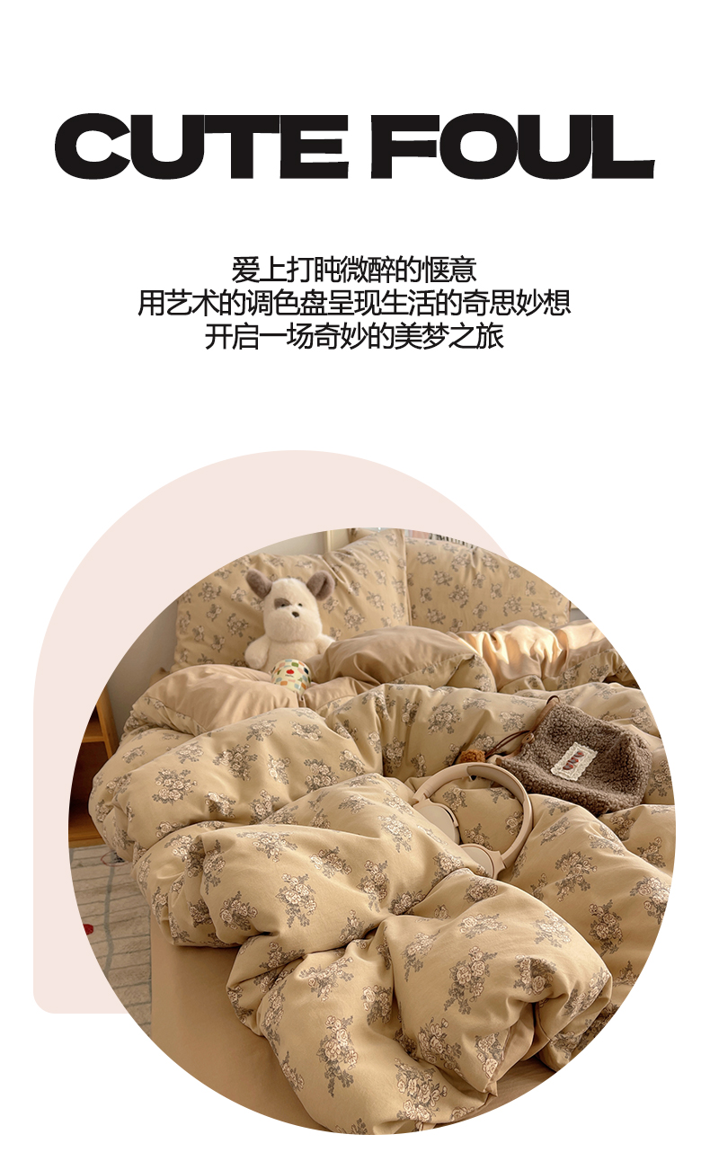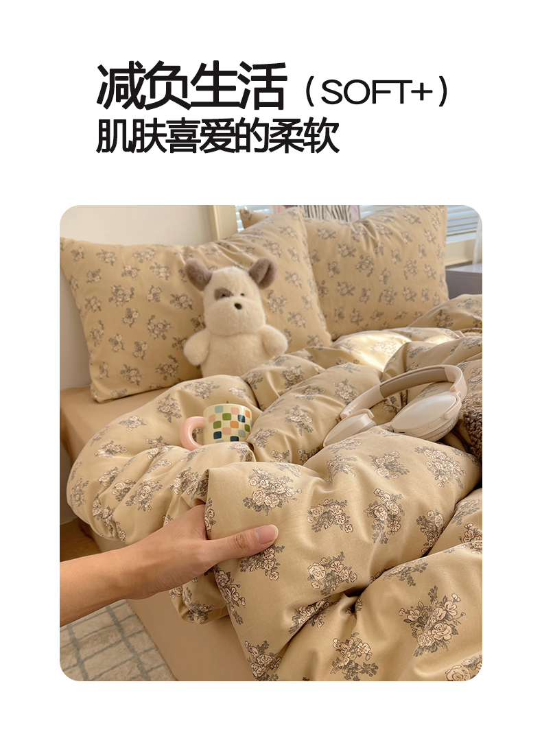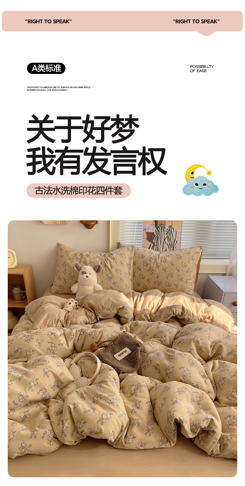 当前位置: 91家纺网 > 商品网购 > 床品套件 > 四件套 > 水洗棉四件套 > 星禾优选 2025新款A类仿棉四件套古法水洗棉小清新印花四件套单被套系列(提供买家秀) 余烬-咖