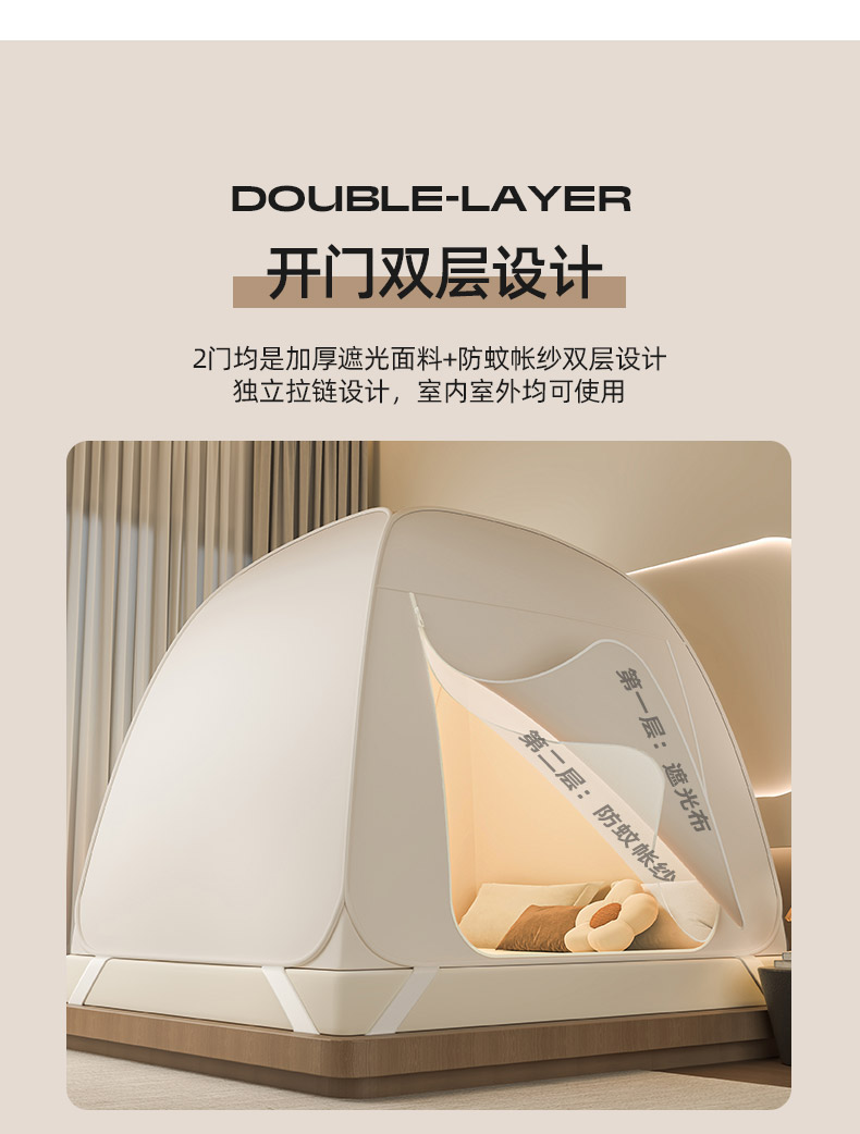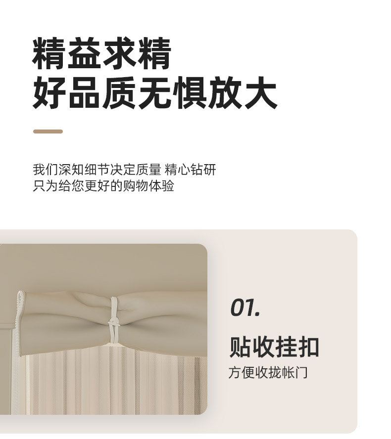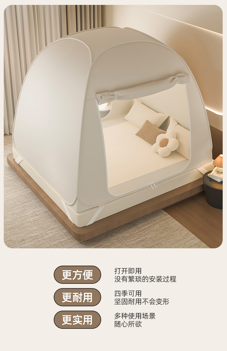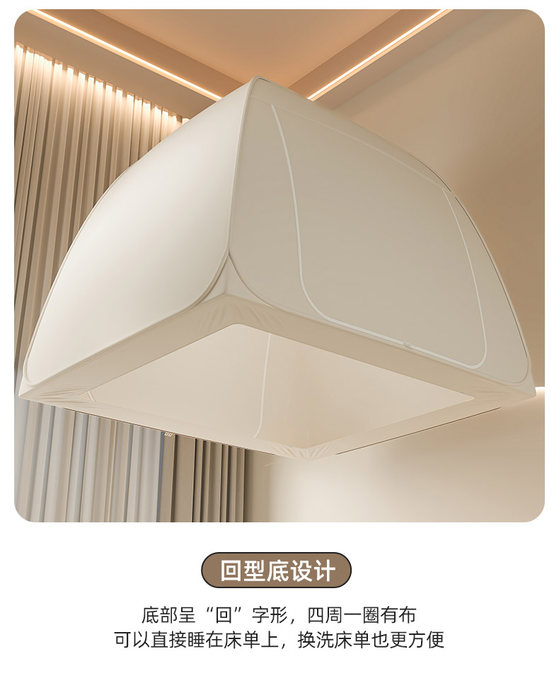 商品名称:海虹蚊帐 2025新款免安装保暖遮光钢丝蚊帐 浅米咖加厚全底
