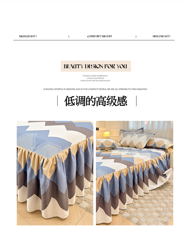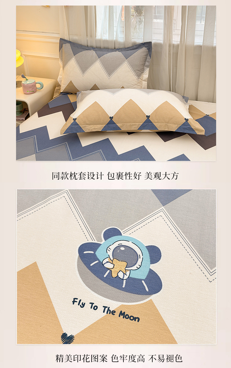 • 91家纺网 家纺一手货源 找家纺 名优家纺 2026新款12868全棉小清新印花四件套单品系列-床裙三件套 几何飞船