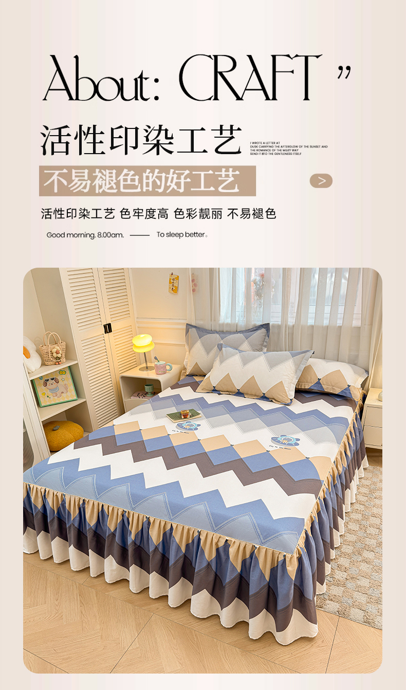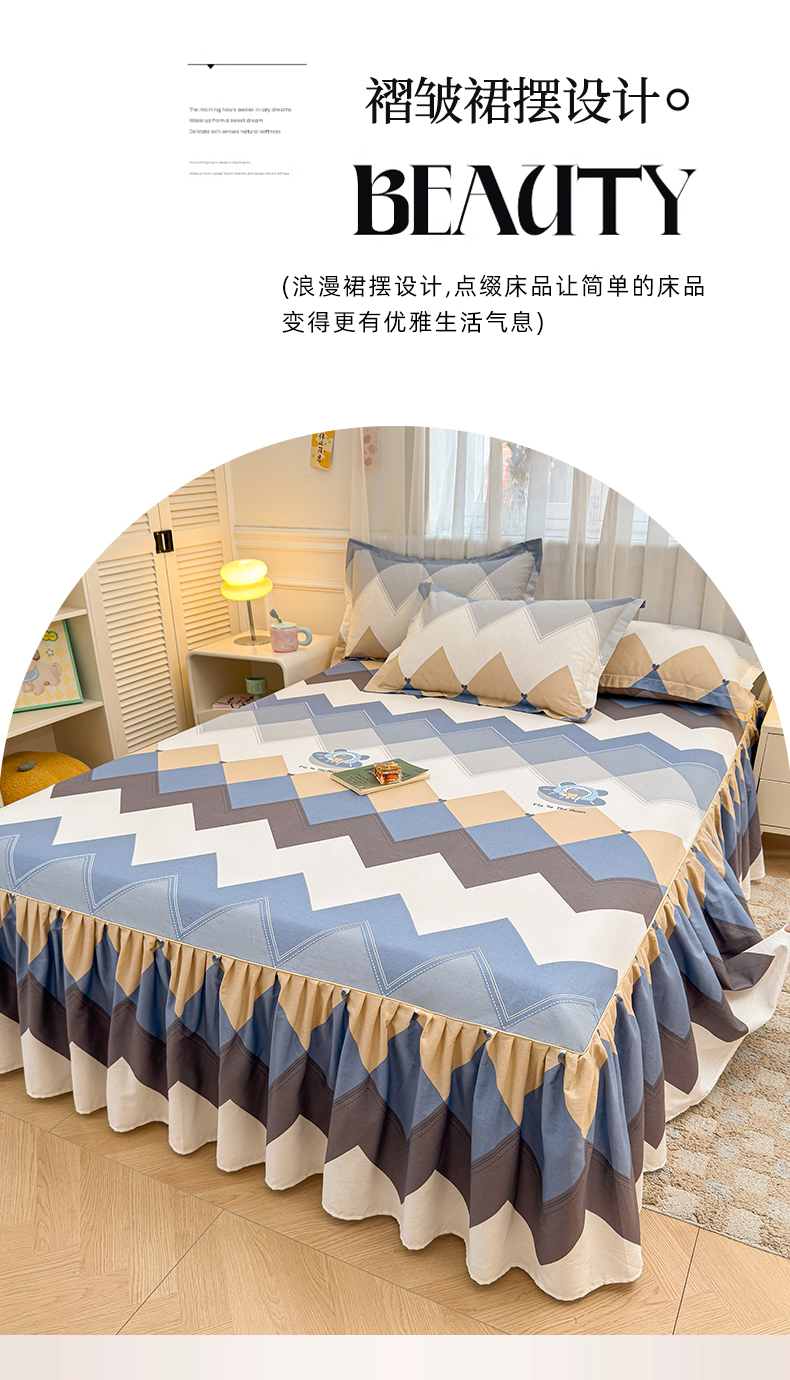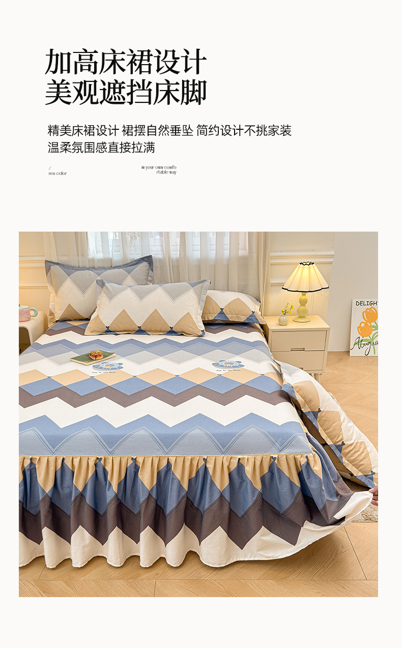 名优家纺 2026新款12868全棉小清新印花四件套单品系列-床裙三件套 几何飞船