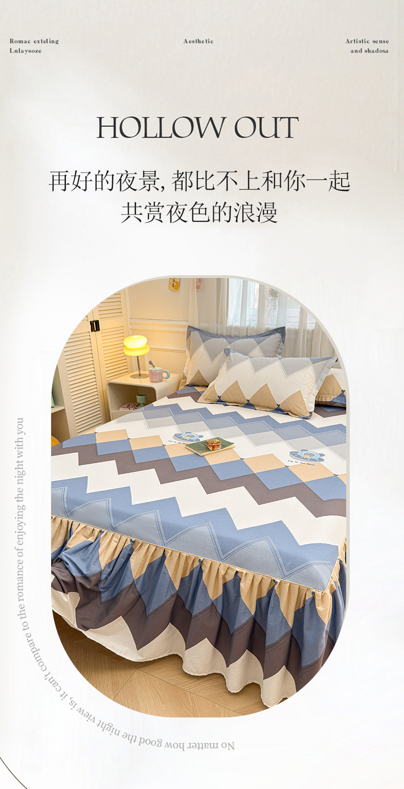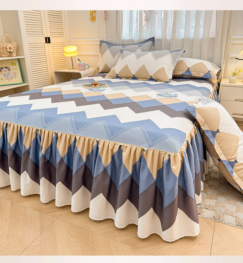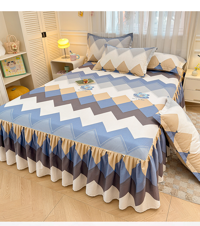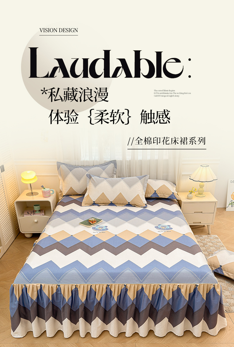名优家纺 2026新款12868全棉小清新印花四件套单品系列-床裙三件套 几何飞船