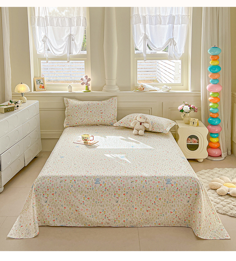 名优家纺 2026新款12868全棉小清新印花四件套单品系列-单床单 动物花园