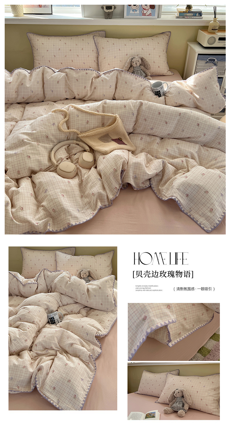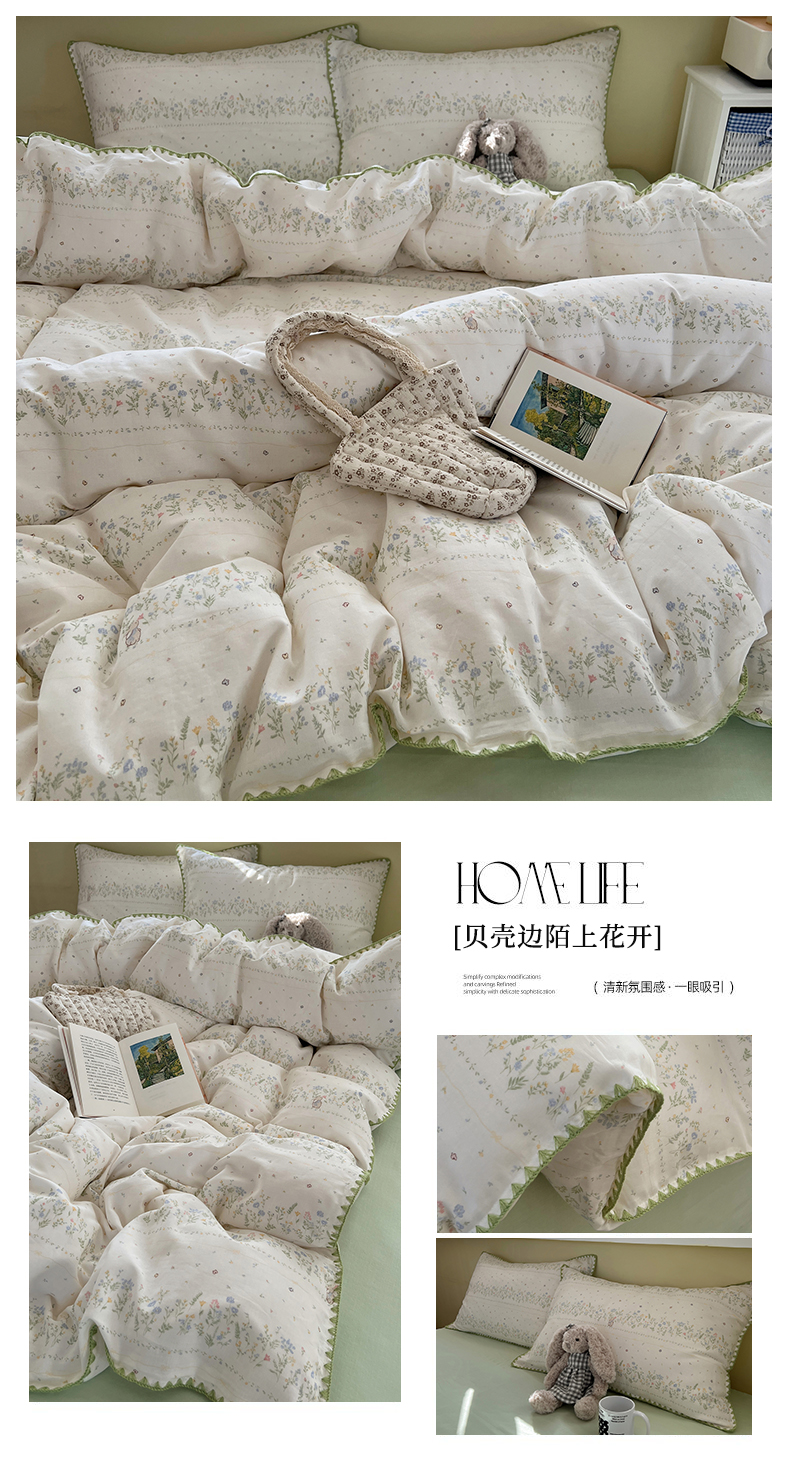 当前位置: 91家纺网 > 商品网购 > 床品套件 > 四件套 > 双层纱四件套 > 曼之夏 2026新款全棉纯棉有氧双层纱贝壳边四件套 贝壳边伯拉德