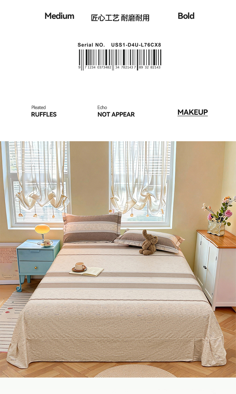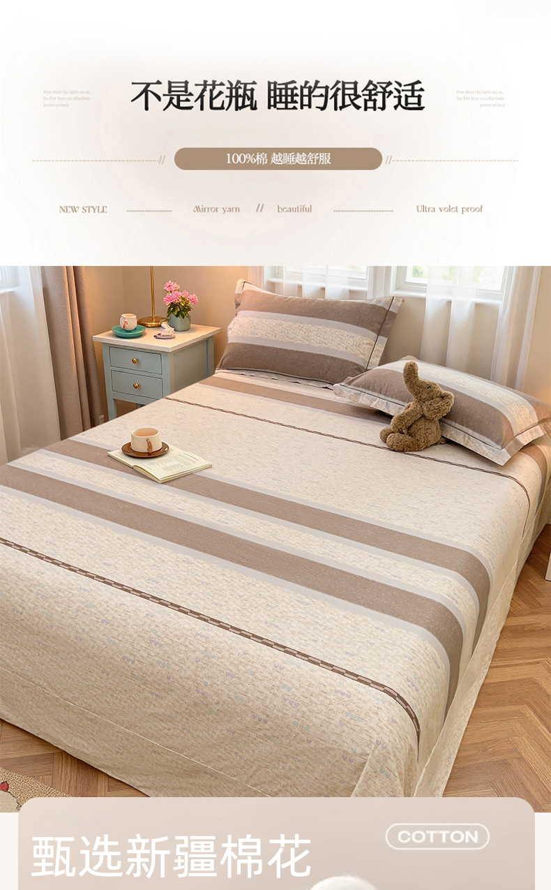 名优家纺 2026新款60S13374高支密全棉印花纯色单床单 初简