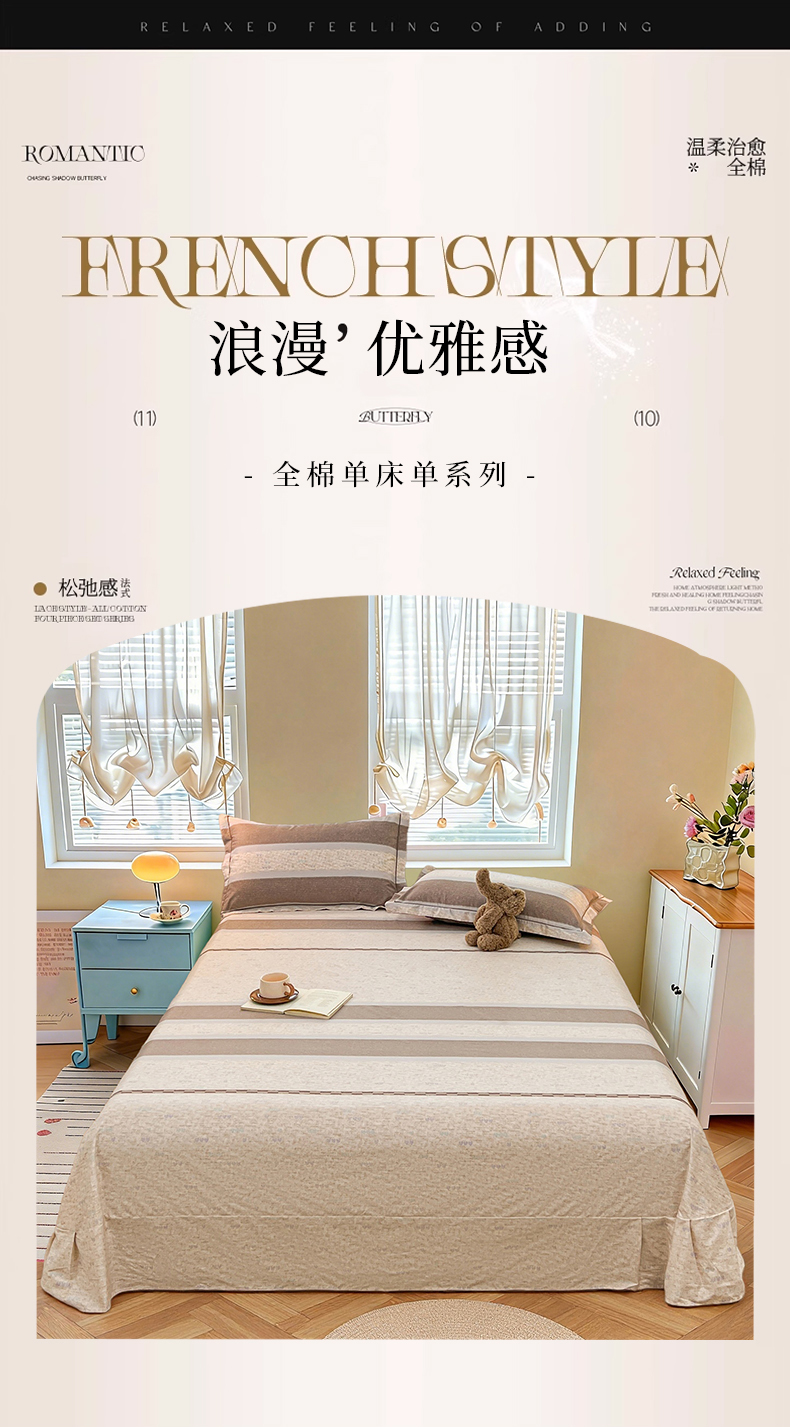 • 91家纺网 家纺一手货源 找家纺 名优家纺 2026新款60S13374高支密全棉印花纯色单床单 初简