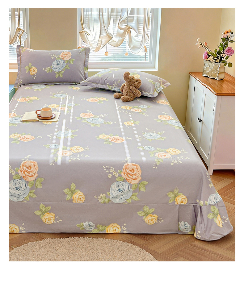 • 91家纺网 家纺一手货源 找家纺 名优家纺 2026新款60S13374高支密全棉印花纯色单床单 絮棠-灰