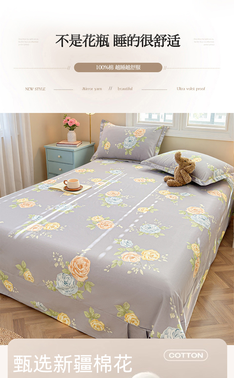 (总)名优家纺 2026新款13070全棉印花单床单,调皮熊猫,抚香意叶,卡希亚,开心动物城,理想生活-灰,兔茶春序,晚风私语,小粉螺,星点兔语,星星独角兽,星语星愿,怡花