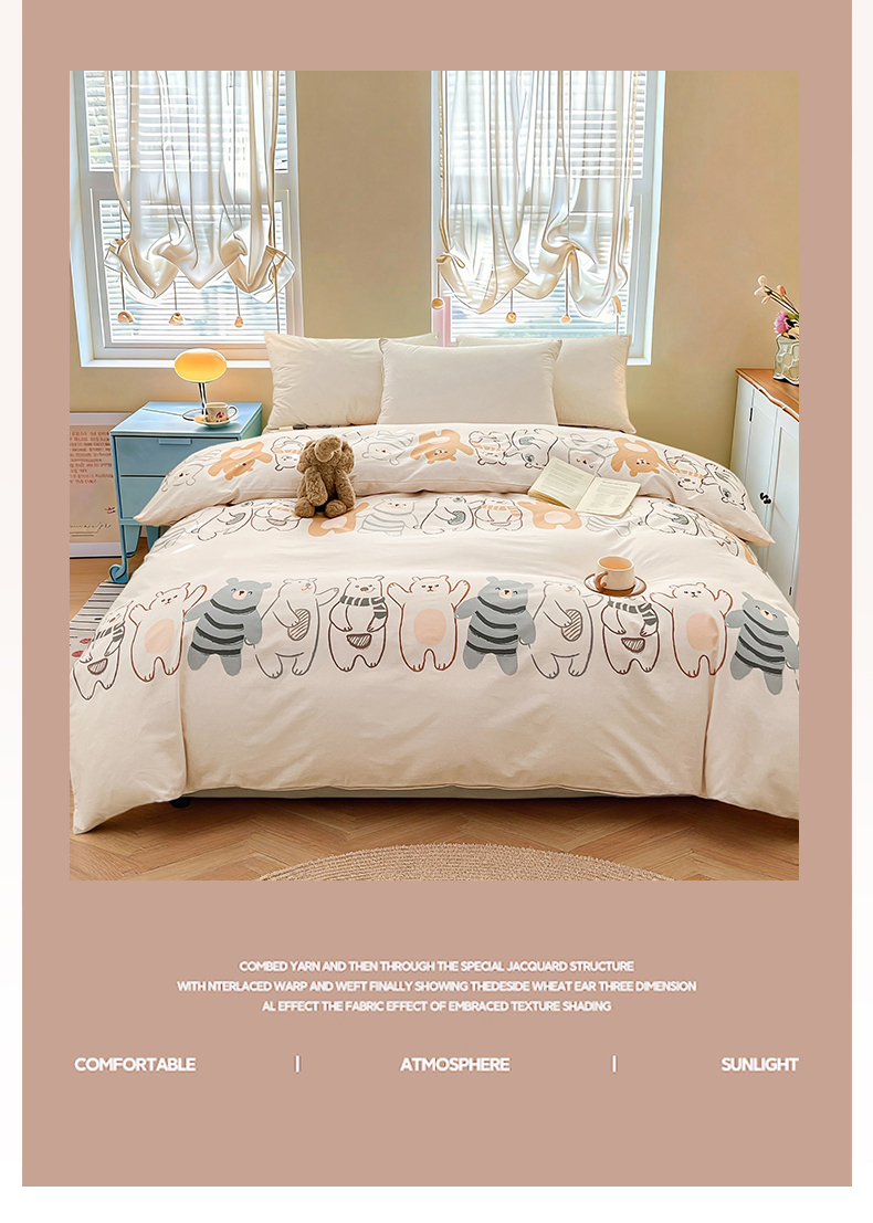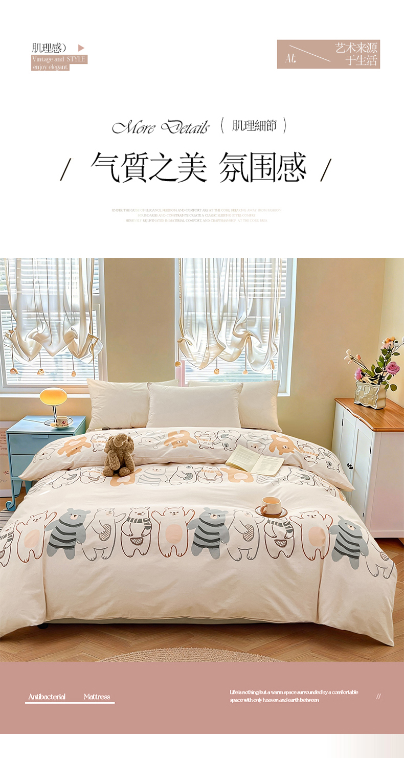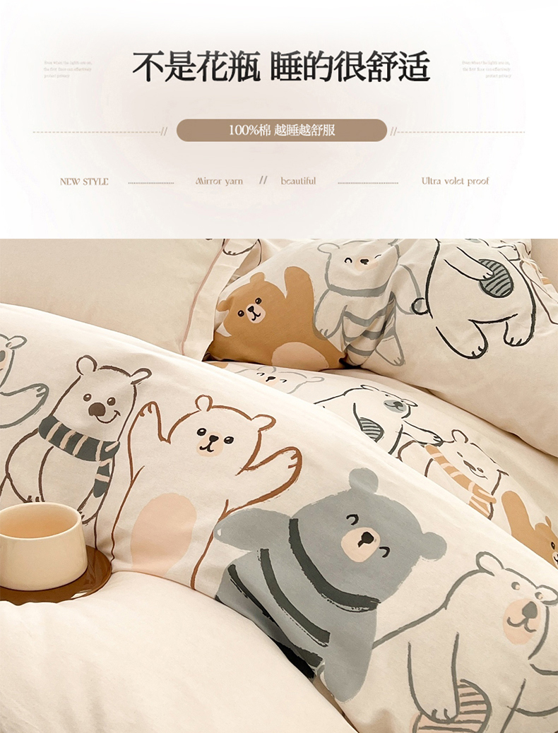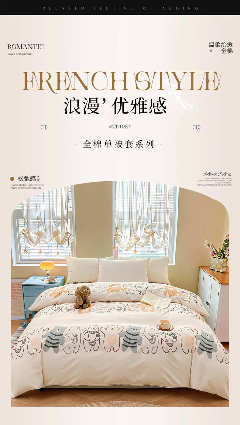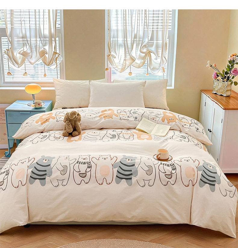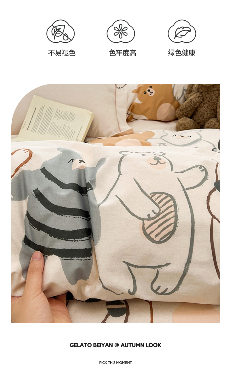 • 91家纺网 家纺一手货源 找家纺 名优家纺 2026新款全棉纯棉单被套被套单件 熊派对-米
