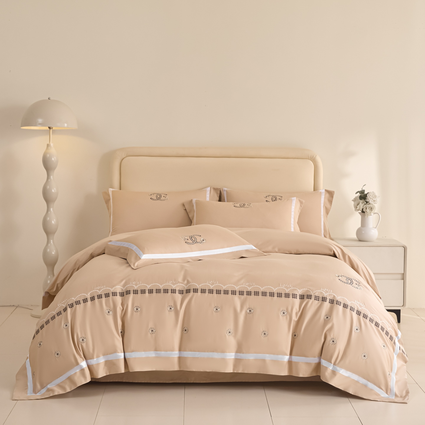 当前位置: 91家纺网 > 商品网购 > 床品套件 > 四件套 > 贡缎全棉四件套 > 新方向 2026年刺绣全棉100s贡缎长绒棉纯棉四件套-金伯妮 金伯妮-香槟