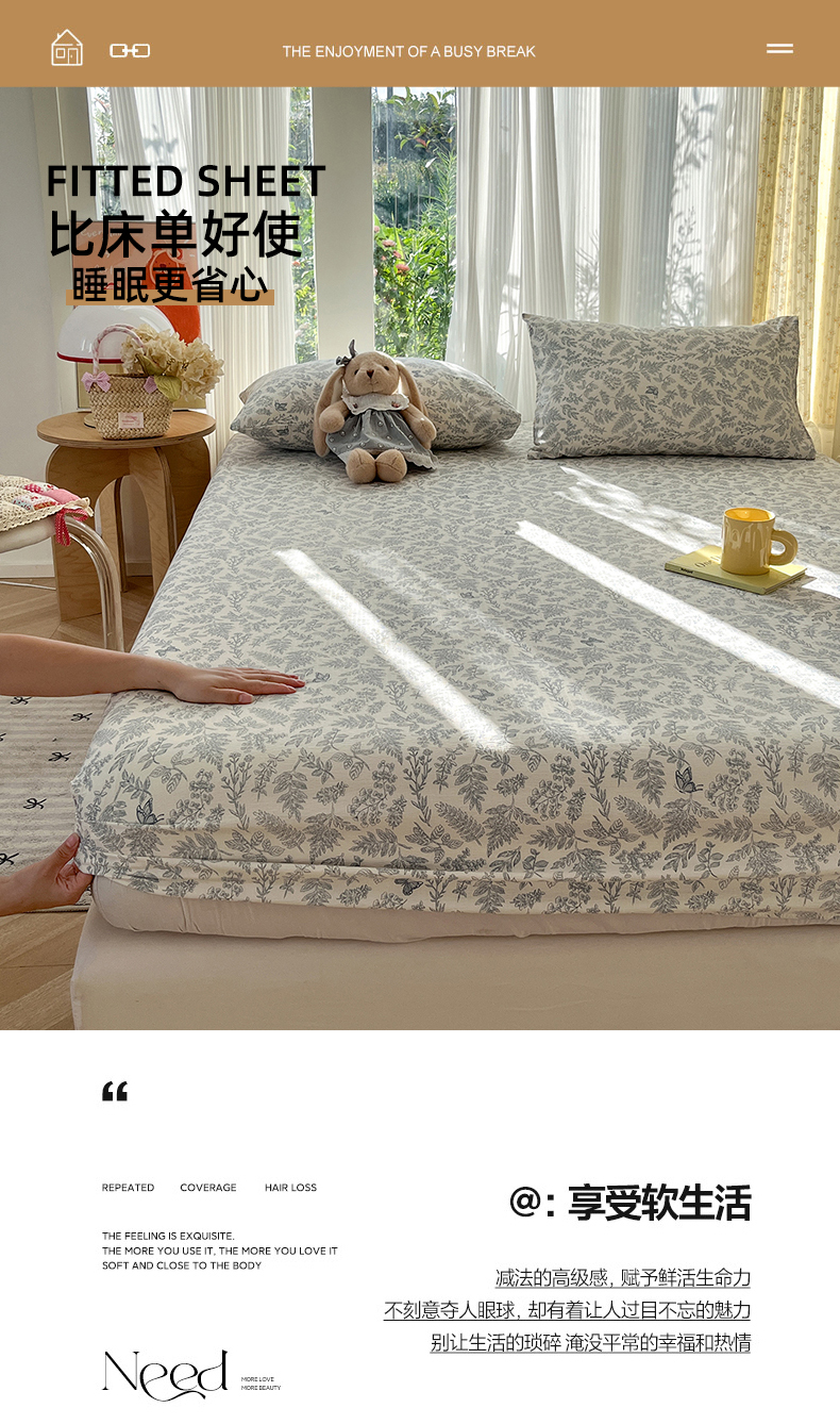 • 91家纺网 家纺一手货源 找家纺 沐芷 2026 【提供买家秀】双层纱A类床笠单件/床笠三件套  床笠款床罩床垫保护套罩 东方草木