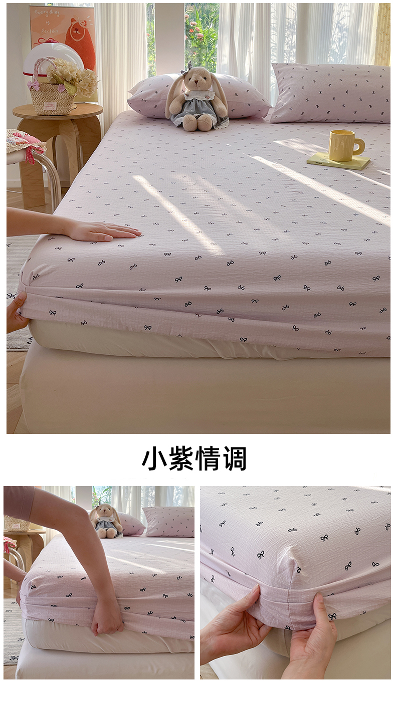 (总)沐芷 2026 【提供买家秀】古法水洗仿棉床笠席梦思床罩床垫防滑床套罩床笠三件套,萌物,甜梦糖豆,巴黎甜心,白月光,豹纹音乐,波点汪语,彩虹跳跳糖,漫游小鱼,萌犬游记,迷你格-黄,迷你格-蓝,奶味圆饼,暖意小熊,星仔,樱桃物语,组合图