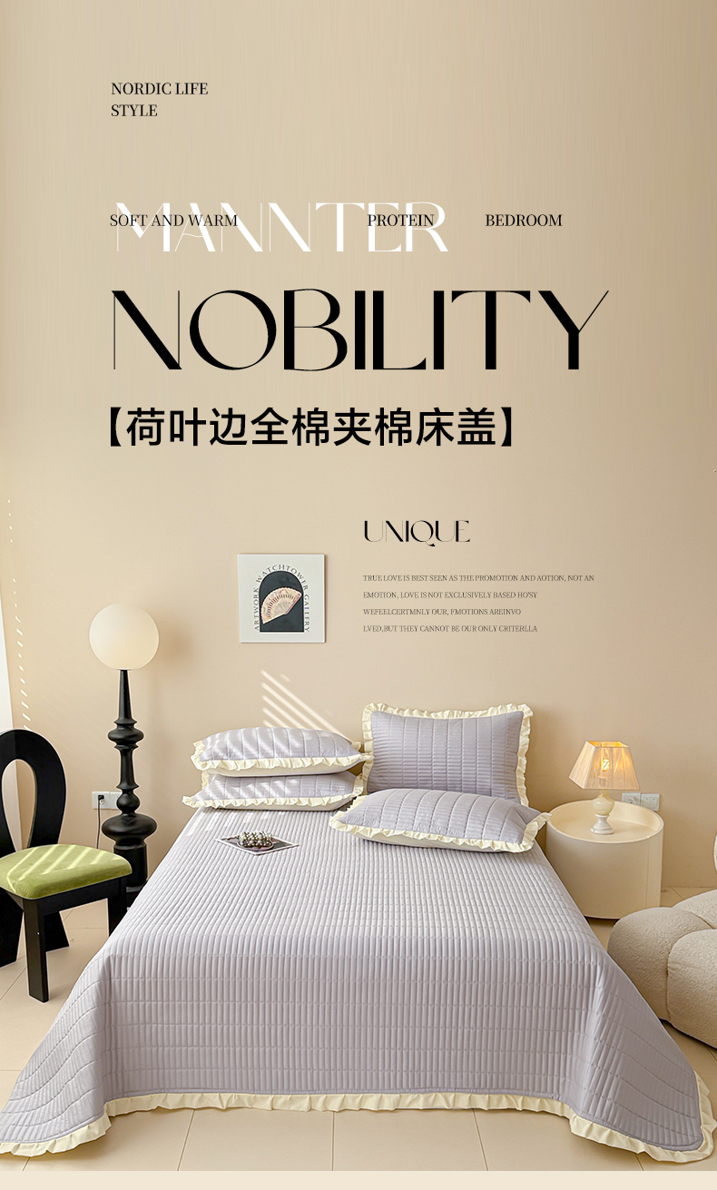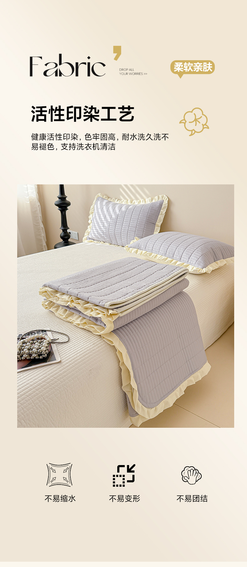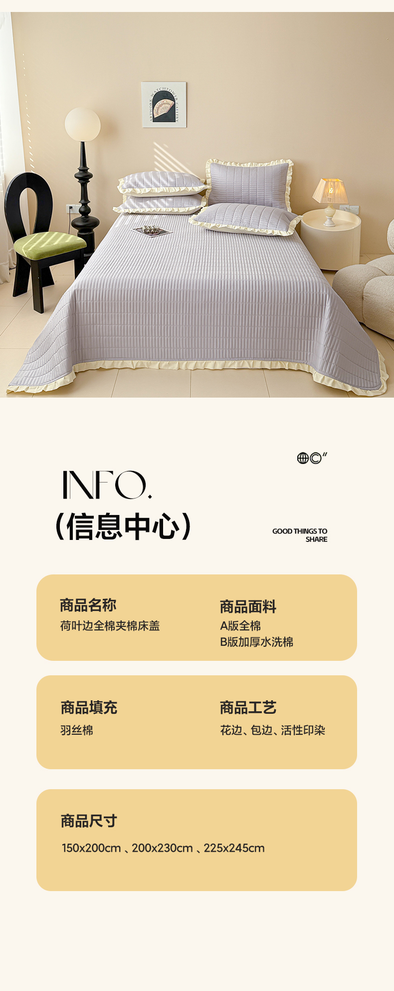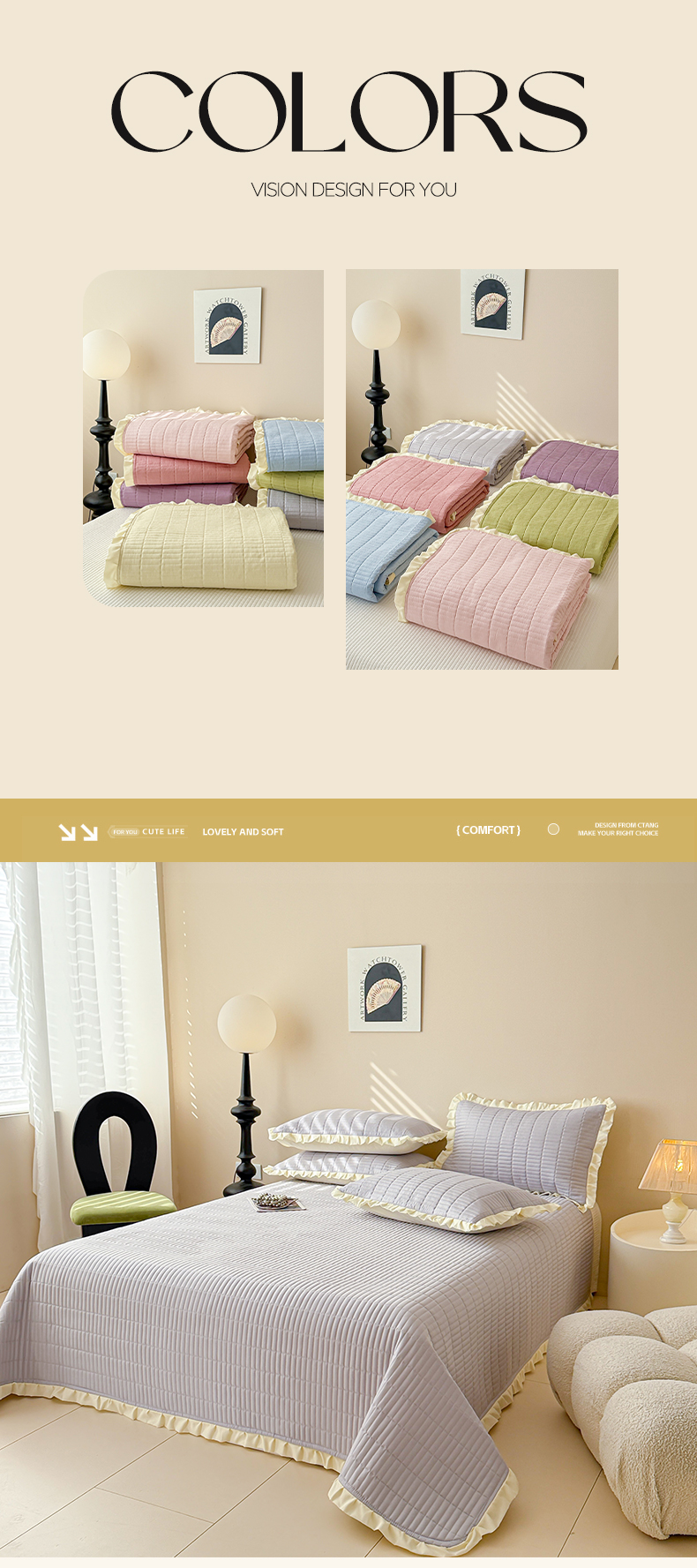 • 91家纺网 家纺一手货源 找家纺 (总)妮可 2026新款全棉纯棉绗缝多功能四季款荷叶边单床盖床盖单件单品床盖,春日粉,奶黄色,浅水蓝,青草绿,轻奢灰,组合图仅供展示不可下单