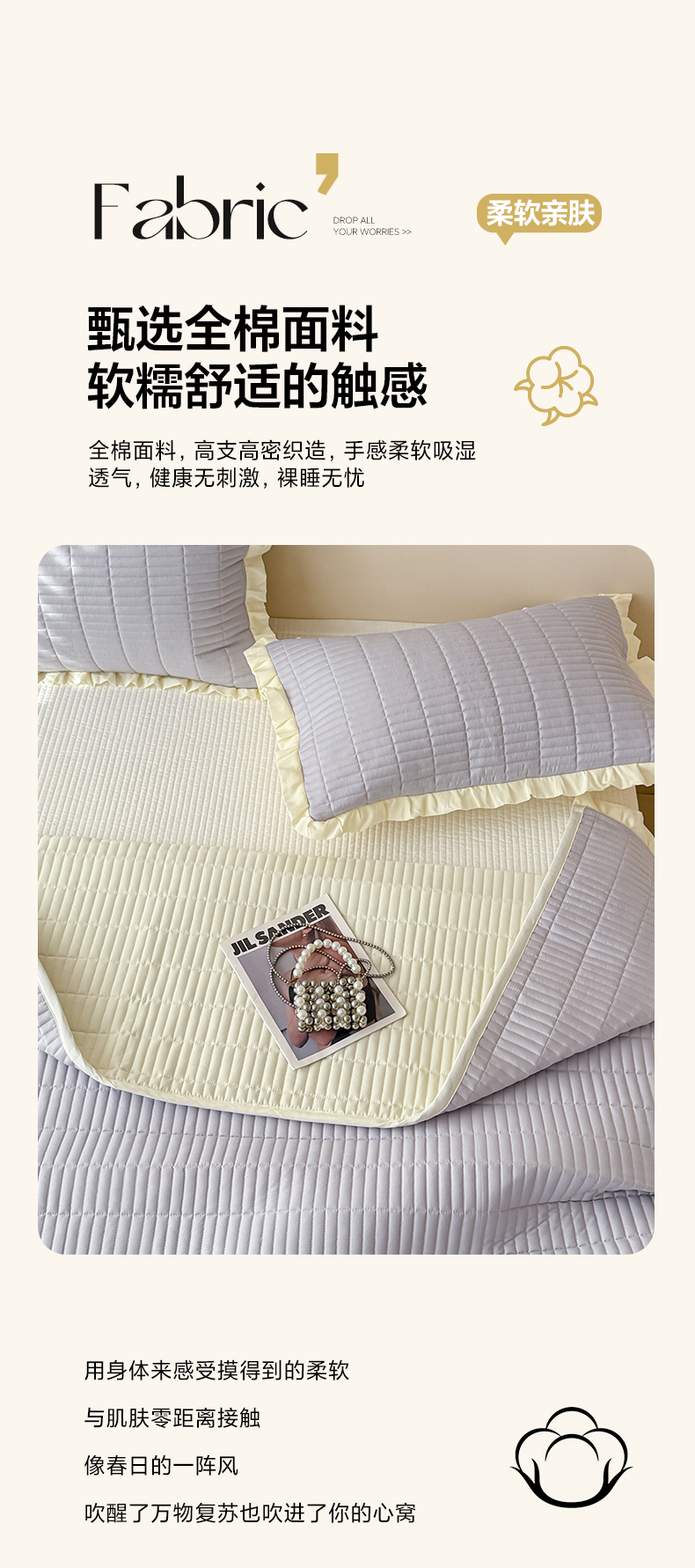 (总)妮可 2026新款全棉纯棉绗缝多功能四季款荷叶边单床盖床盖单件单品床盖,春日粉,奶黄色,浅水蓝,青草绿,轻奢灰,组合图仅供展示不可下单
