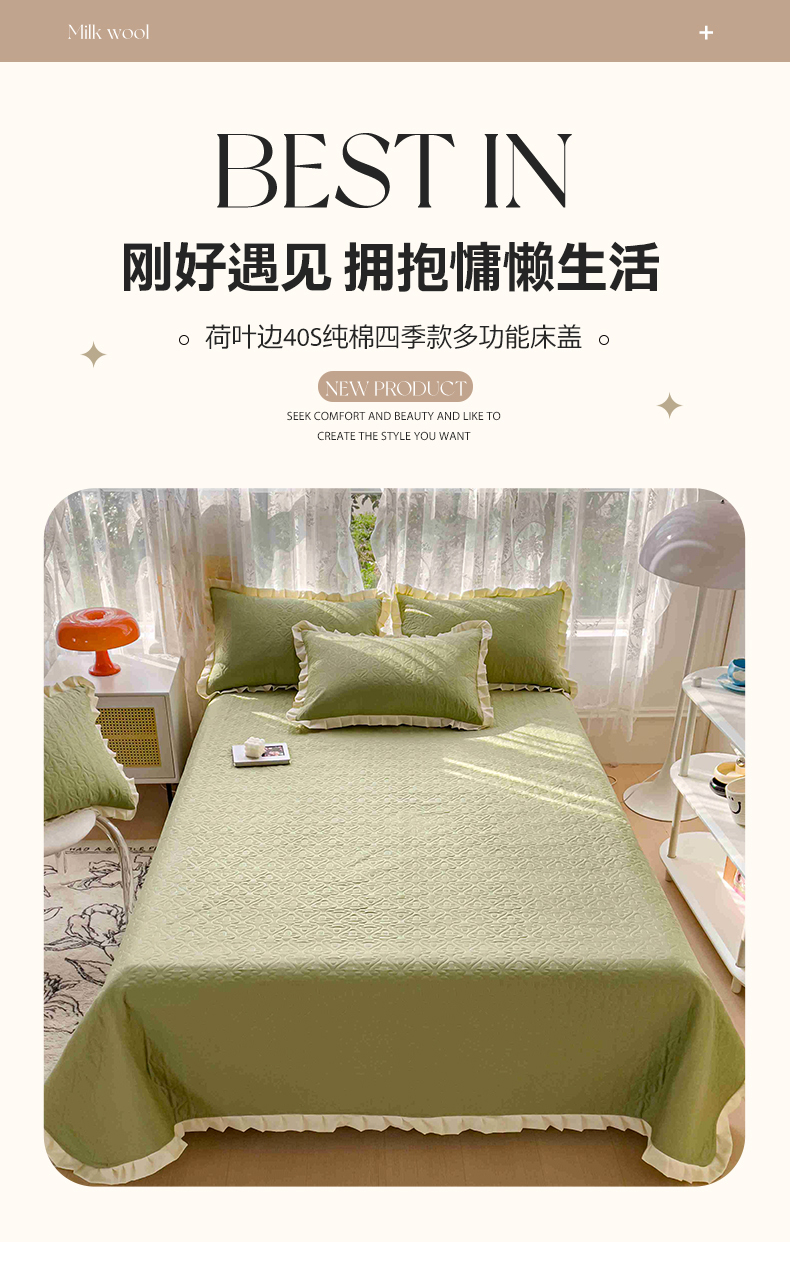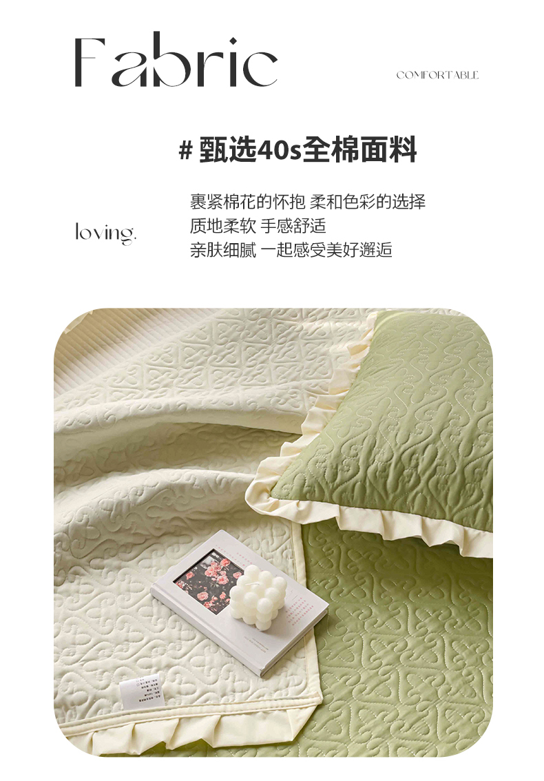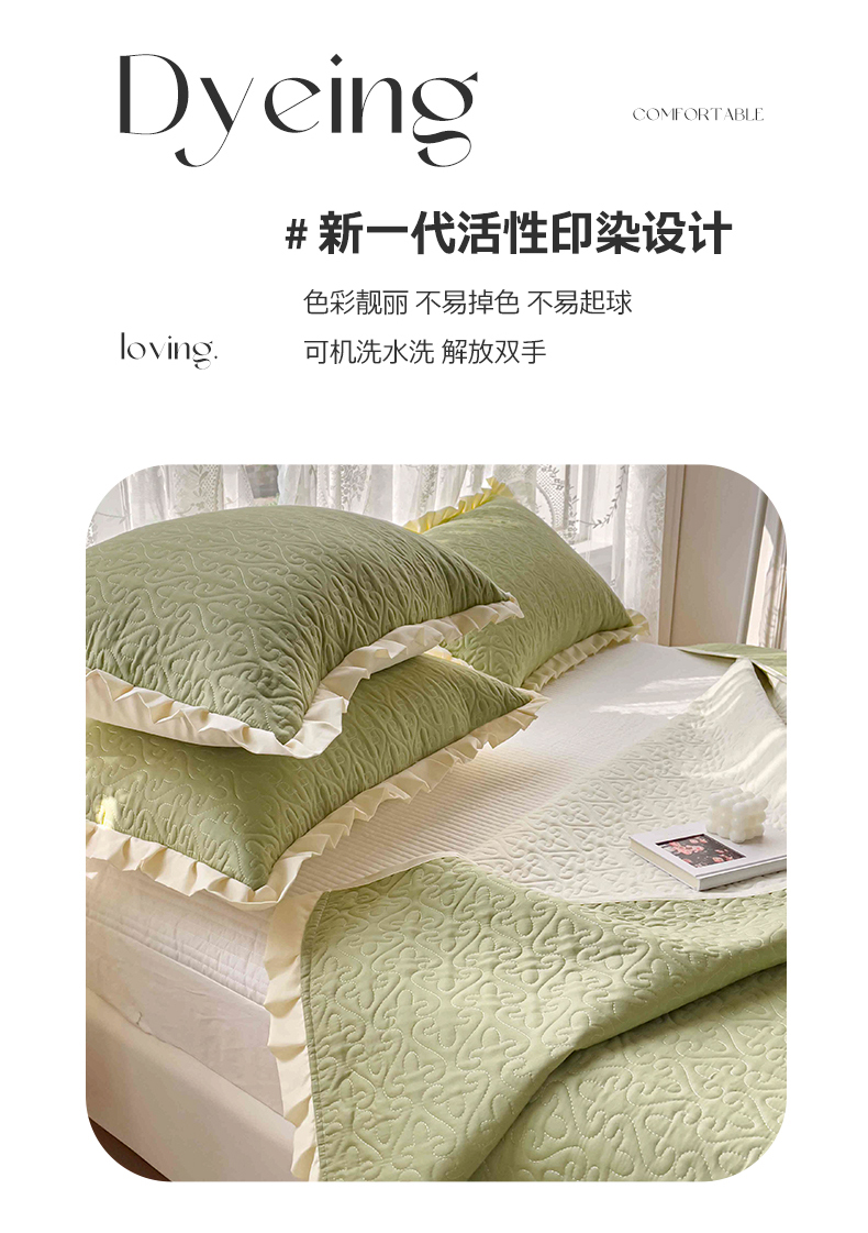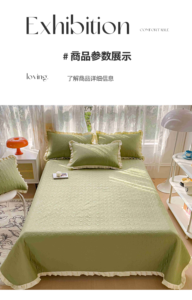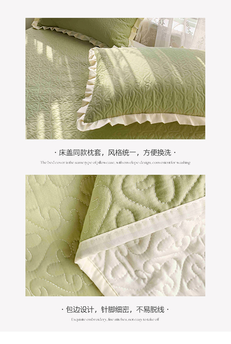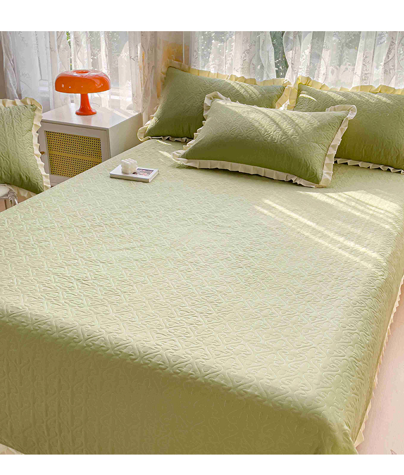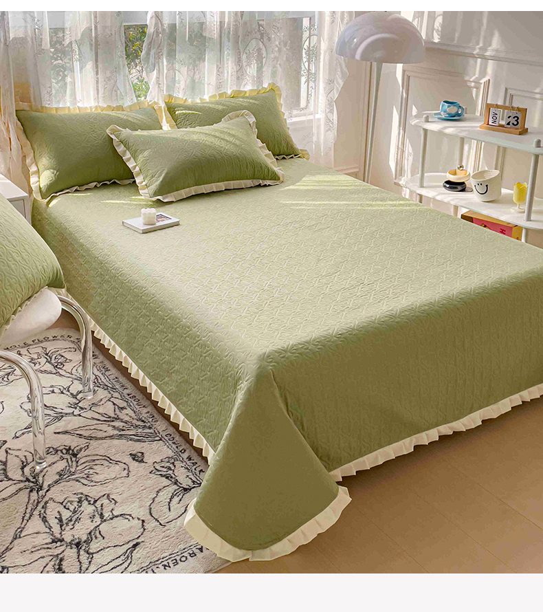 • 91家纺网 家纺一手货源 找家纺 妮可 2026新款全棉纯棉绗缝多功能四季款荷叶边单床盖床盖单件单品床盖 青草绿