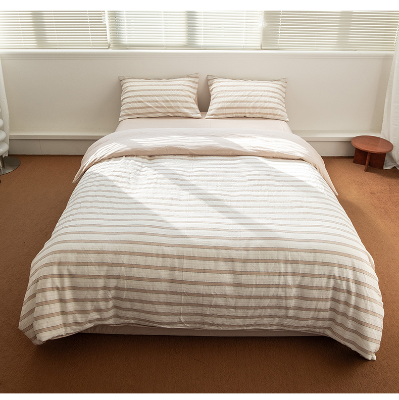 (总)棉小二 2025新款全棉色织条纹双层纱四件套,条纹白,条纹咖,条纹驼