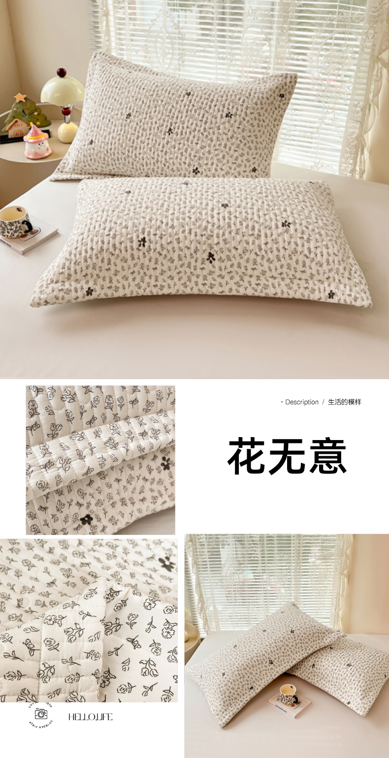 圣比熊 2025新款A类云朵棉夹棉枕套宿舍单人一只装枕芯内胆套-单人枕套 粉黛花园(压线夹棉)