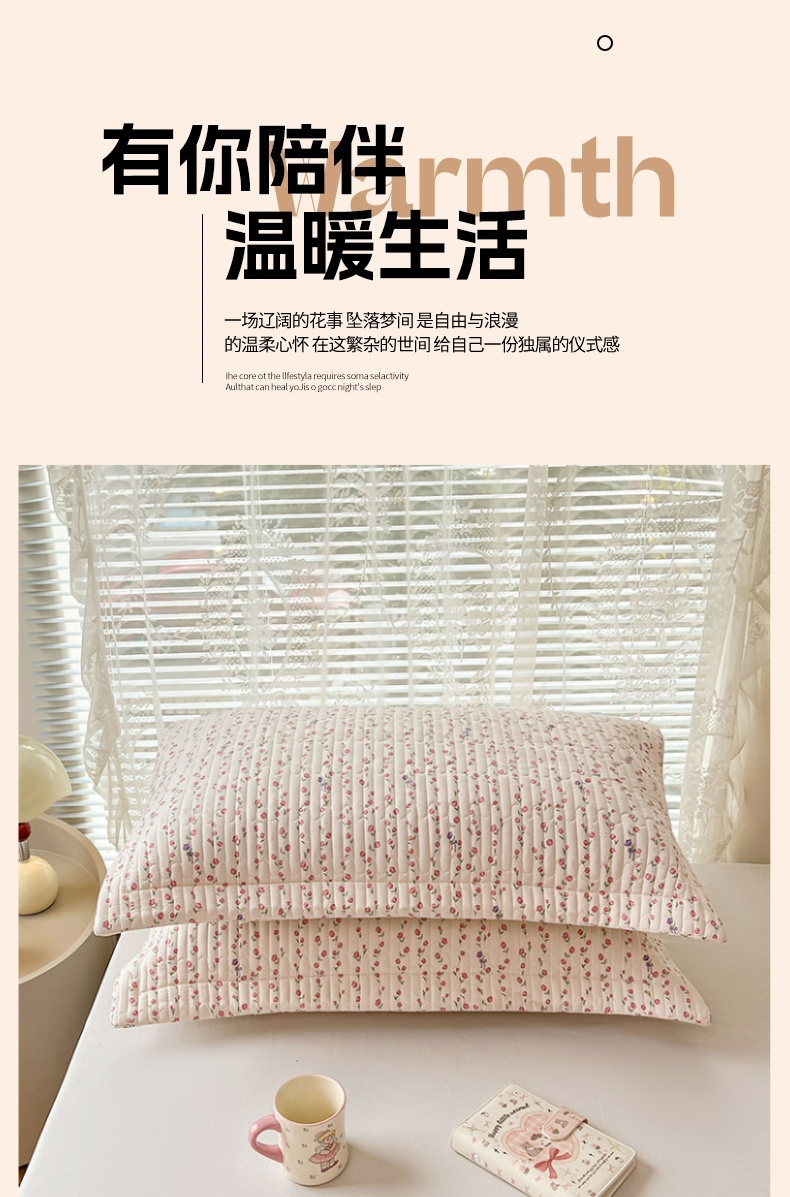 • 91家纺网 家纺一手货源 找家纺 梦舒羽 2025新款A类云朵棉夹棉枕套宿舍单人一只装枕芯内胆套-单人枕套 花漾甜心(压线夹棉)