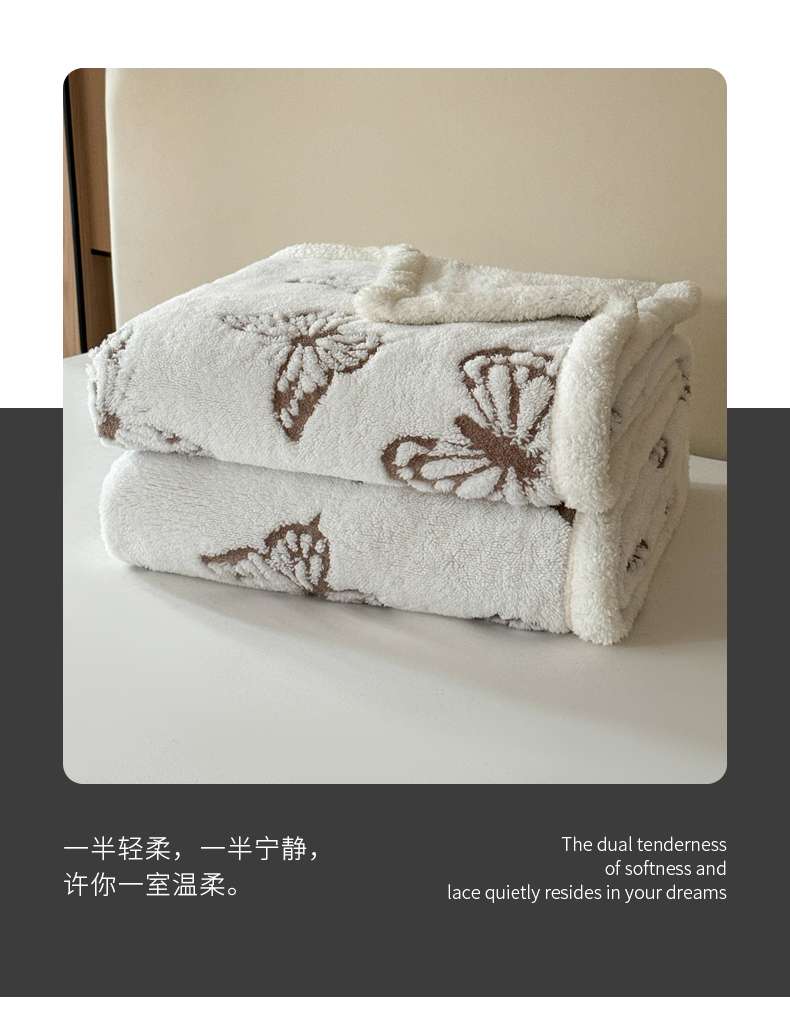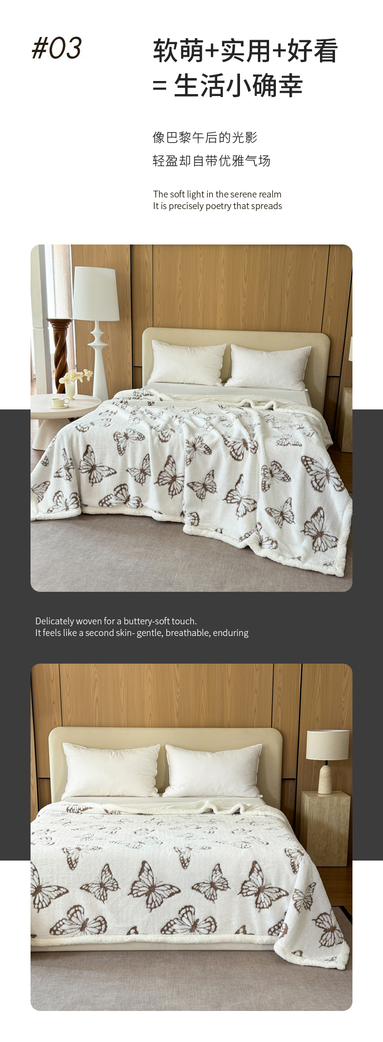 商品名称:丹本家纺 2026新款双层阳离子提花蝴蝶色织多功能盖毯塔芙绒羊羔绒毛毯毯 双层蝴蝶咖