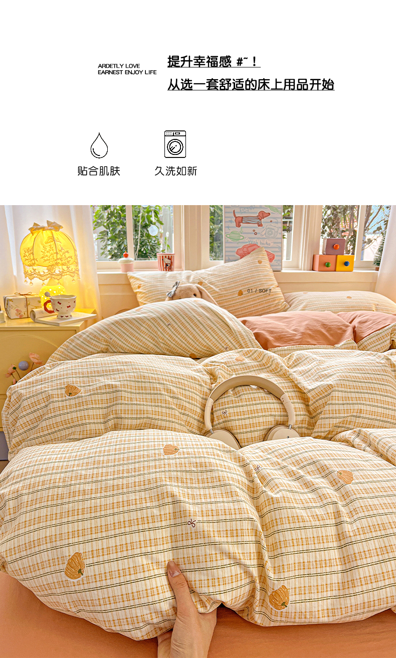 当前位置: 91家纺网 > 商品网购 > 床品套件 > 四件套 > 水洗棉四件套 > 弗苓家纺 2026新款古法水洗仿棉云感纱四件套小布袋 甜心乐园