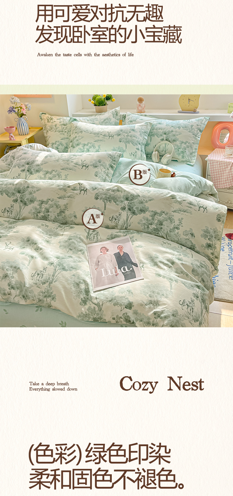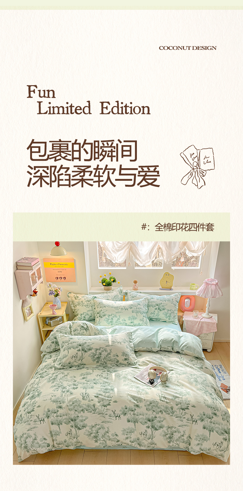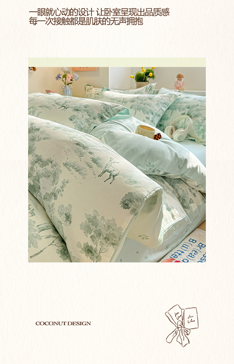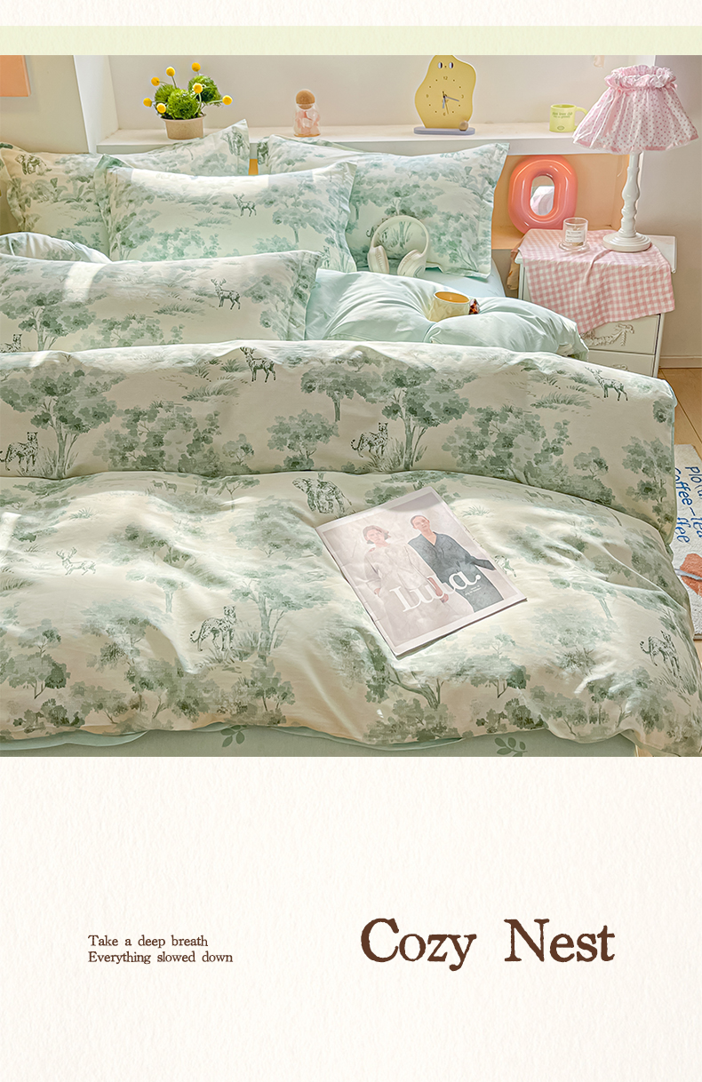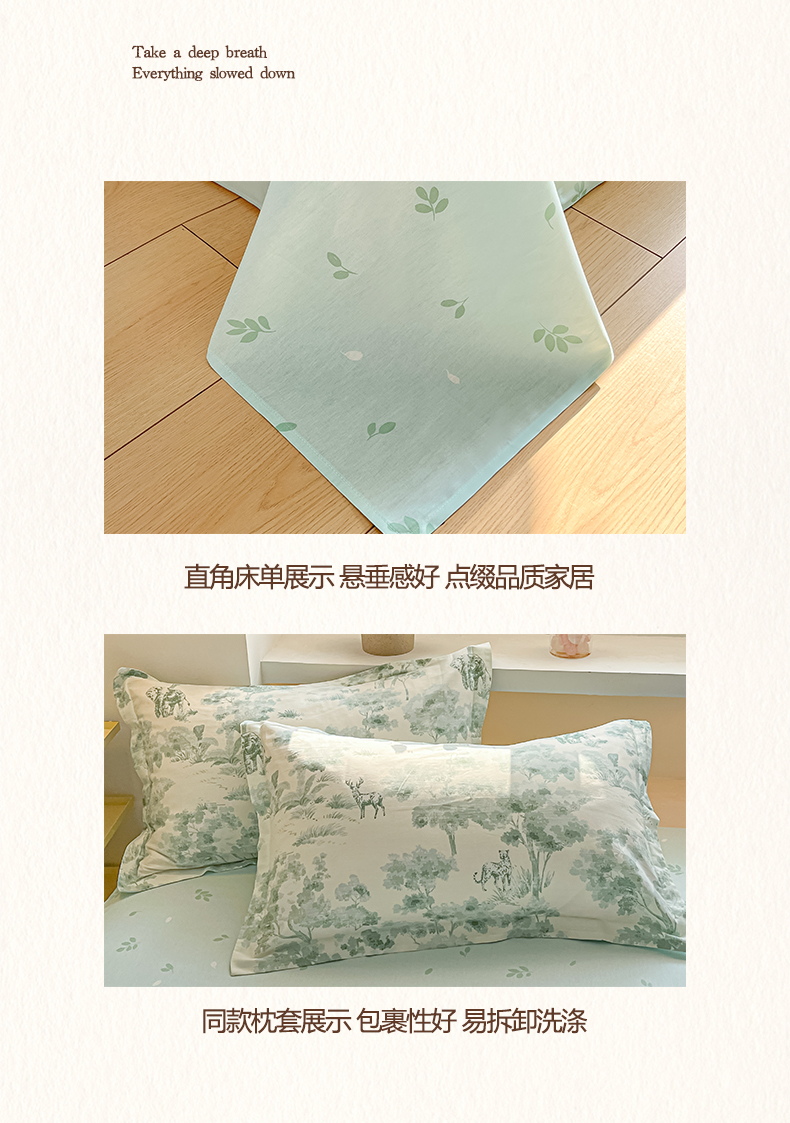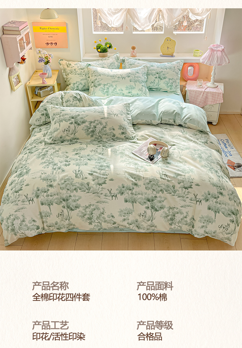 当前位置: 91家纺网 > 商品网购 > 床品套件 > 四件套 > 全棉普通四件套 > 涵宸家纺 2025新款亲肤舒适全棉印花四件套-68系列 总 F花涧-绿