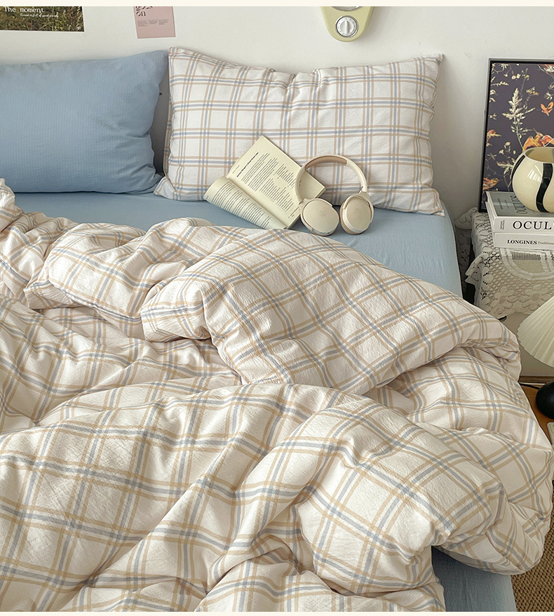 当前位置: 91家纺网 > 商品网购 > 床品套件 > 四件套 > 双层纱四件套 > 海岛哥哥 2026新款双层纱格条系列四件套 奶油焦糖格