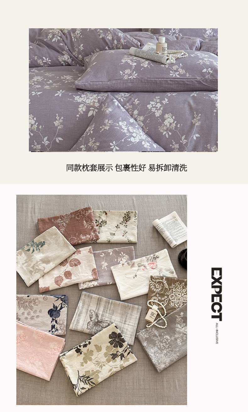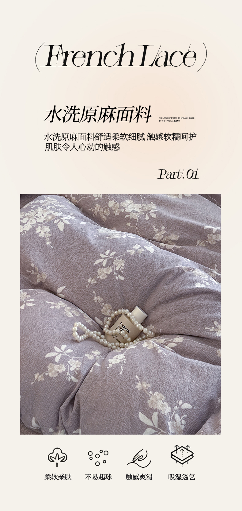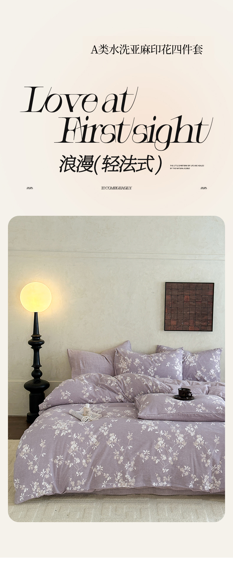 当前位置: 91家纺网 > 商品网购 > 床品套件 > 四件套 > 水洗棉四件套 > 桔禾家纺 2026新款提花高克重原麻复古水洗亚麻皱皱纱印花四件套 锦时