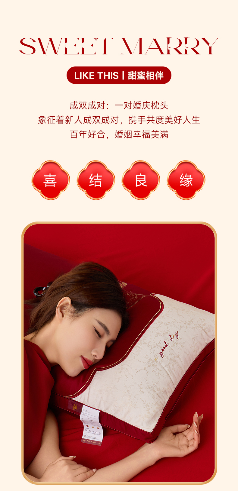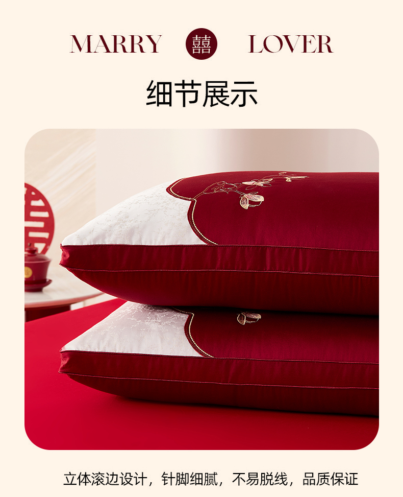 商品名称:(总)昕科 2026新款玉兰喜事婚庆枕-大红婚庆喜庆枕芯刺绣结婚枕头