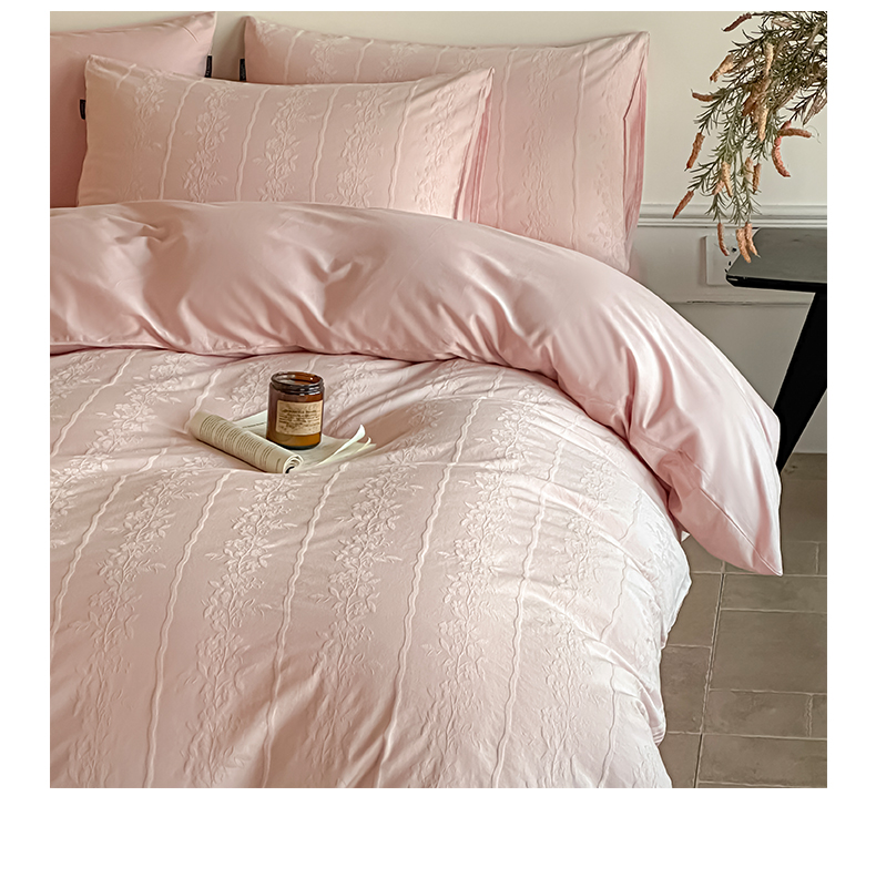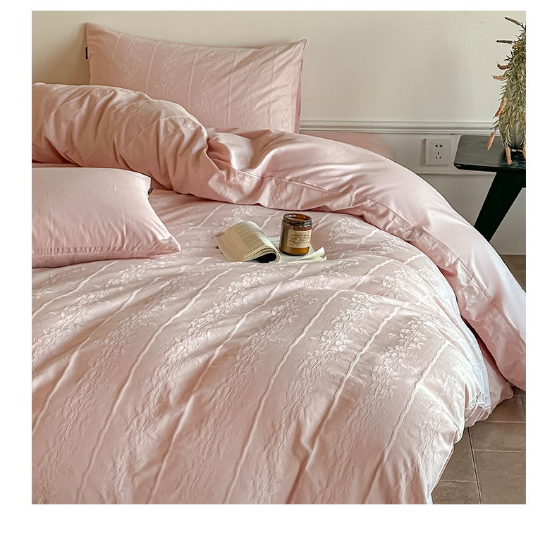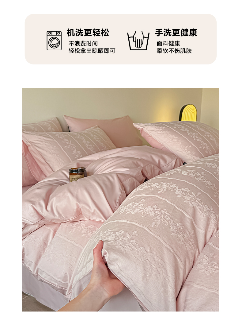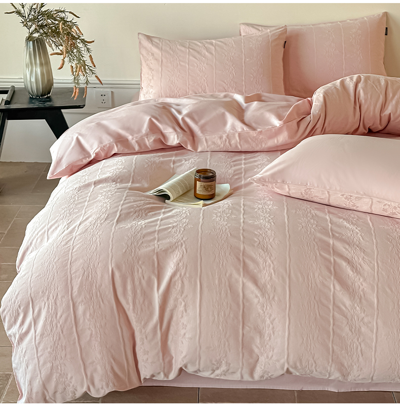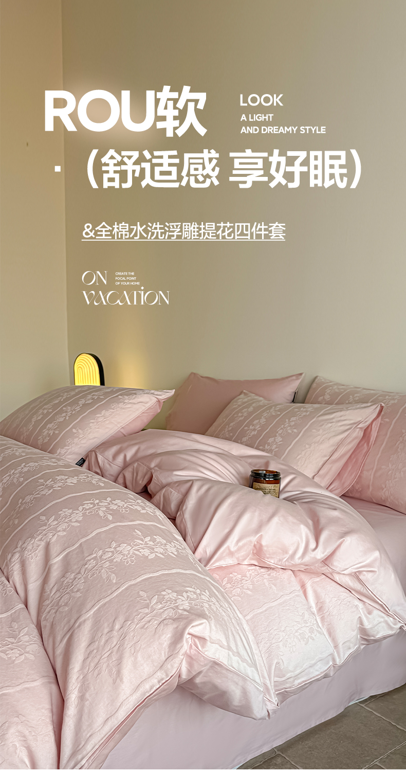 商品名称:如一 2026新款60S全棉水洗提花立体厚织浮雕四件套 花蔓-唯美粉