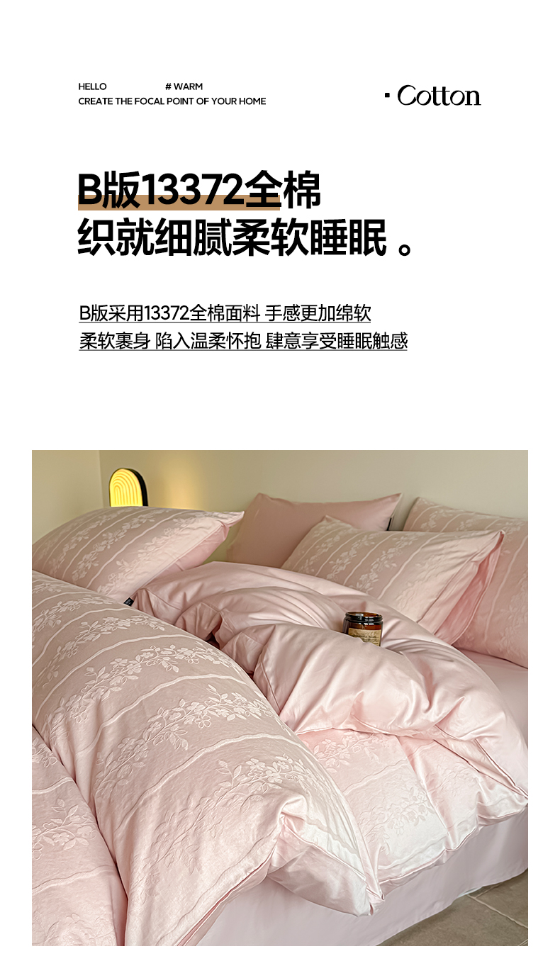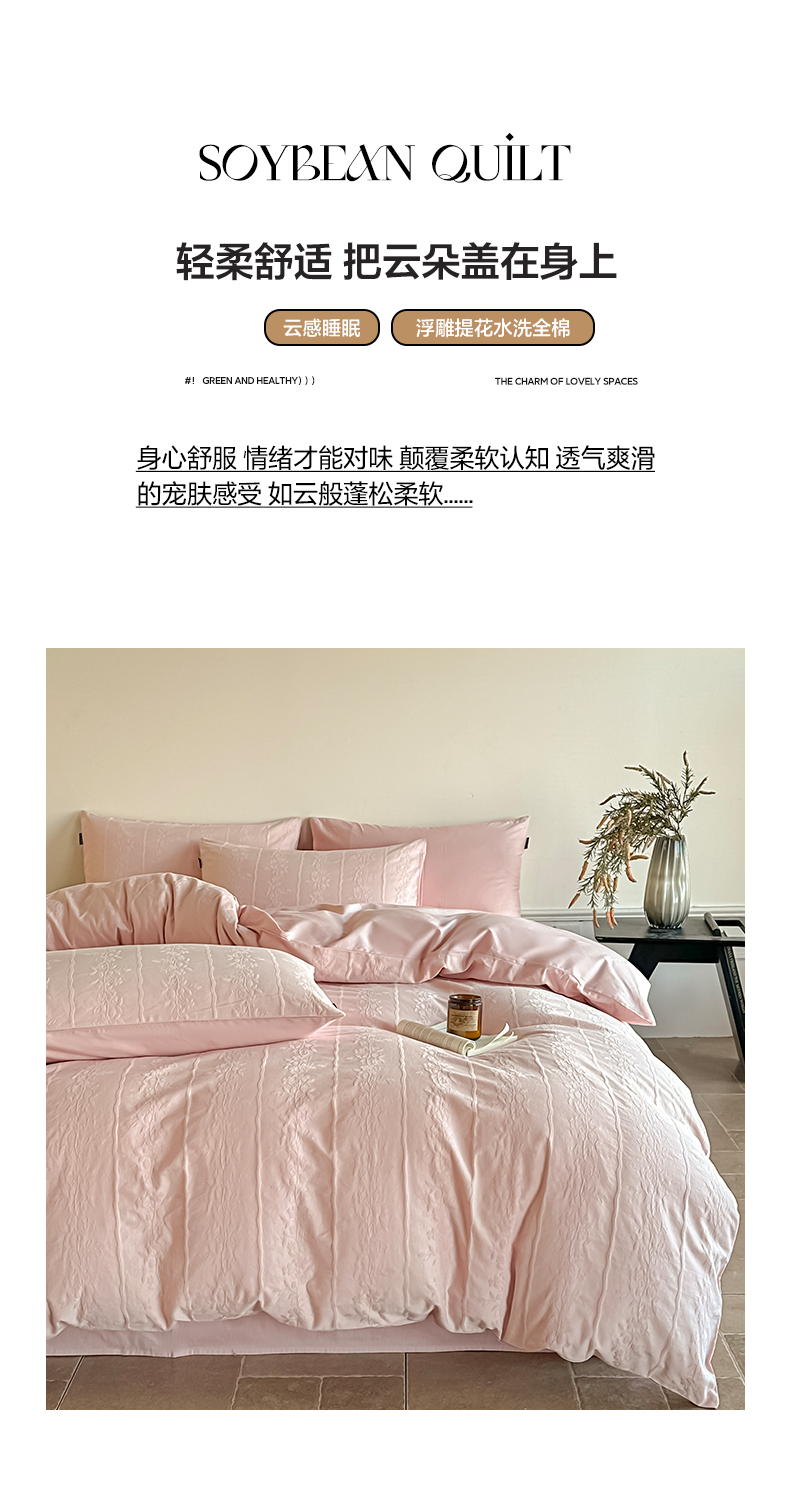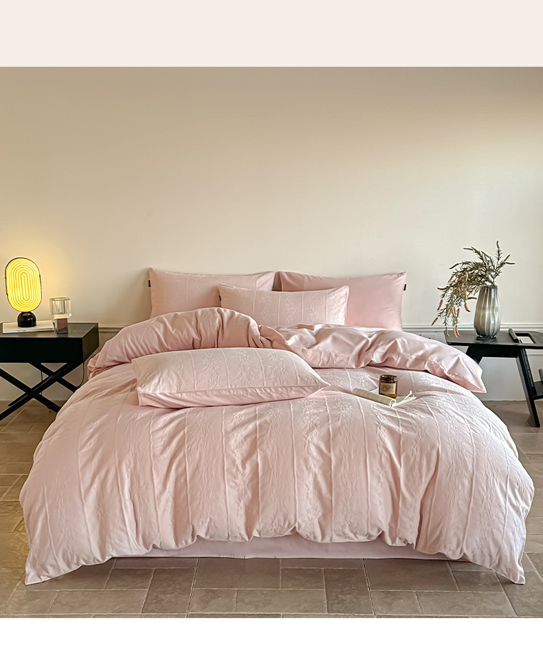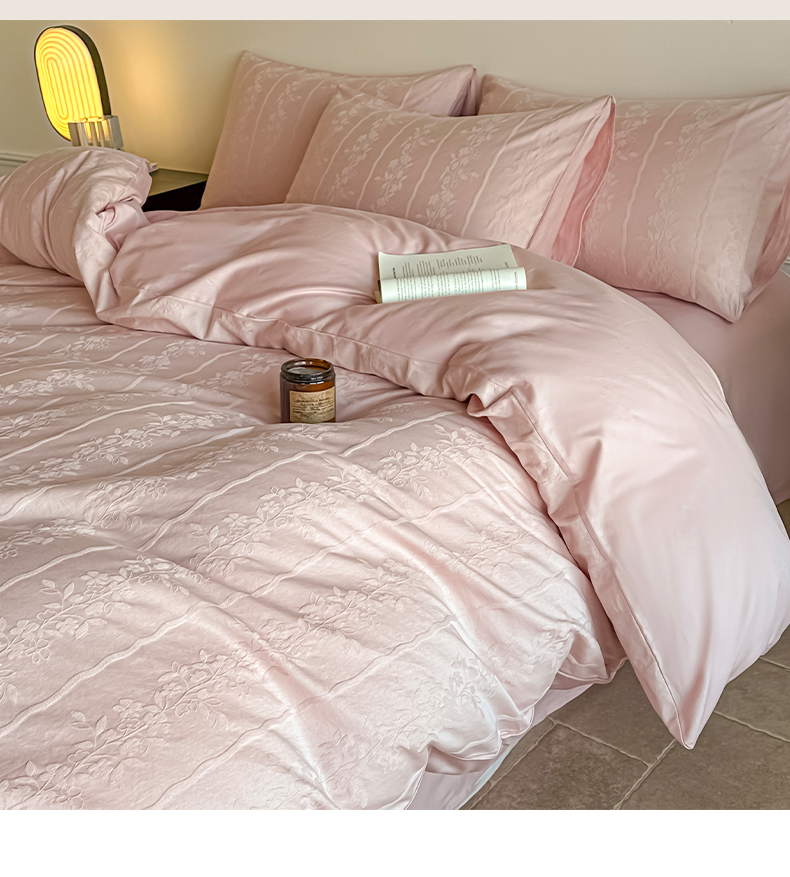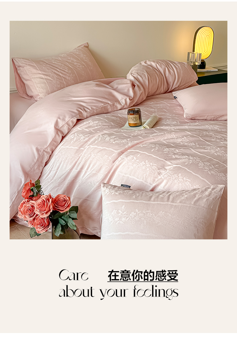商品名称:如一 2026新款60S全棉水洗提花立体厚织浮雕四件套 花蔓-唯美粉