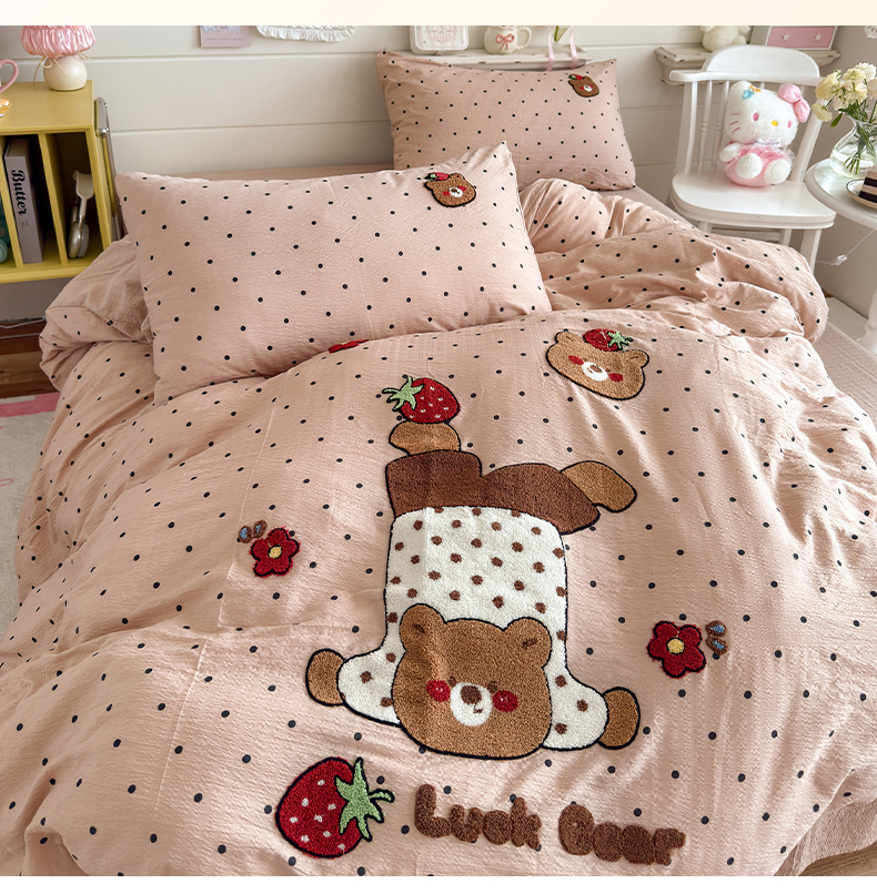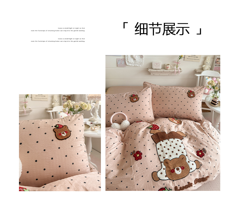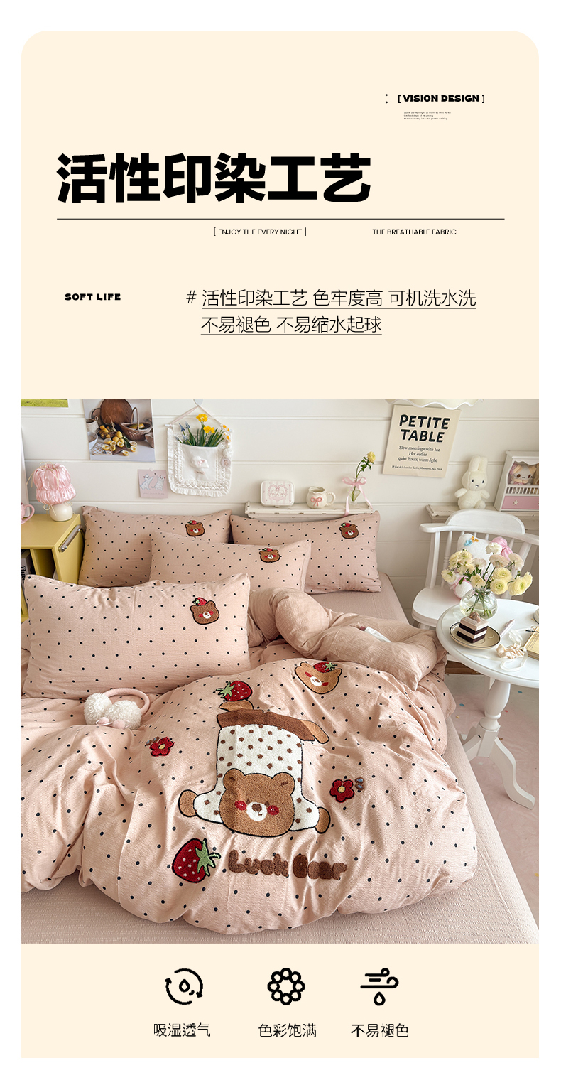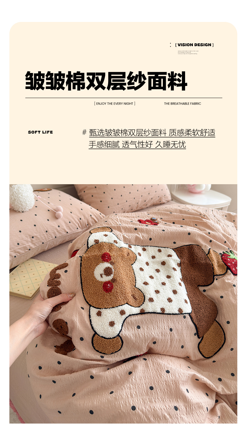 当前位置: 91家纺网 > 商品网购 > 床品套件 > 四件套 > 其它四件套 > 卡斯诺家纺馆 2026新款皱皱棉双层纱毛巾绣四件套(下载文件包含买家秀) 倒立熊