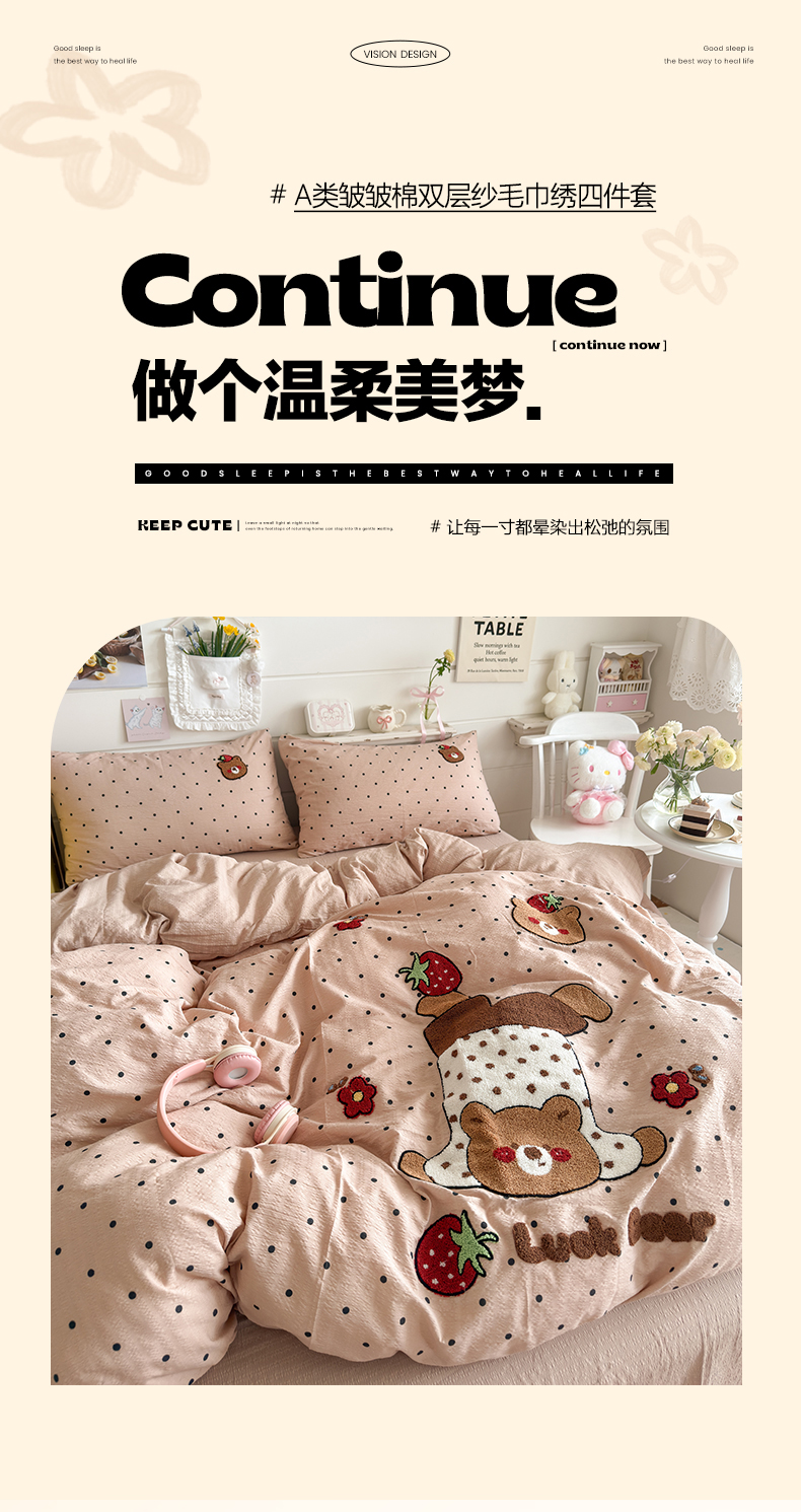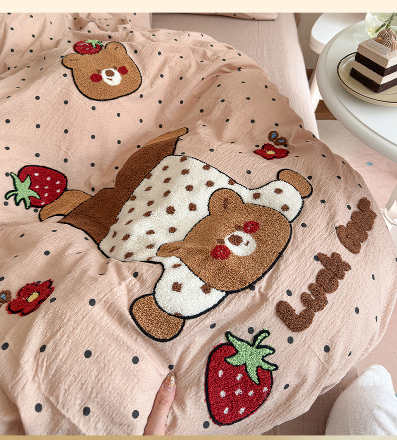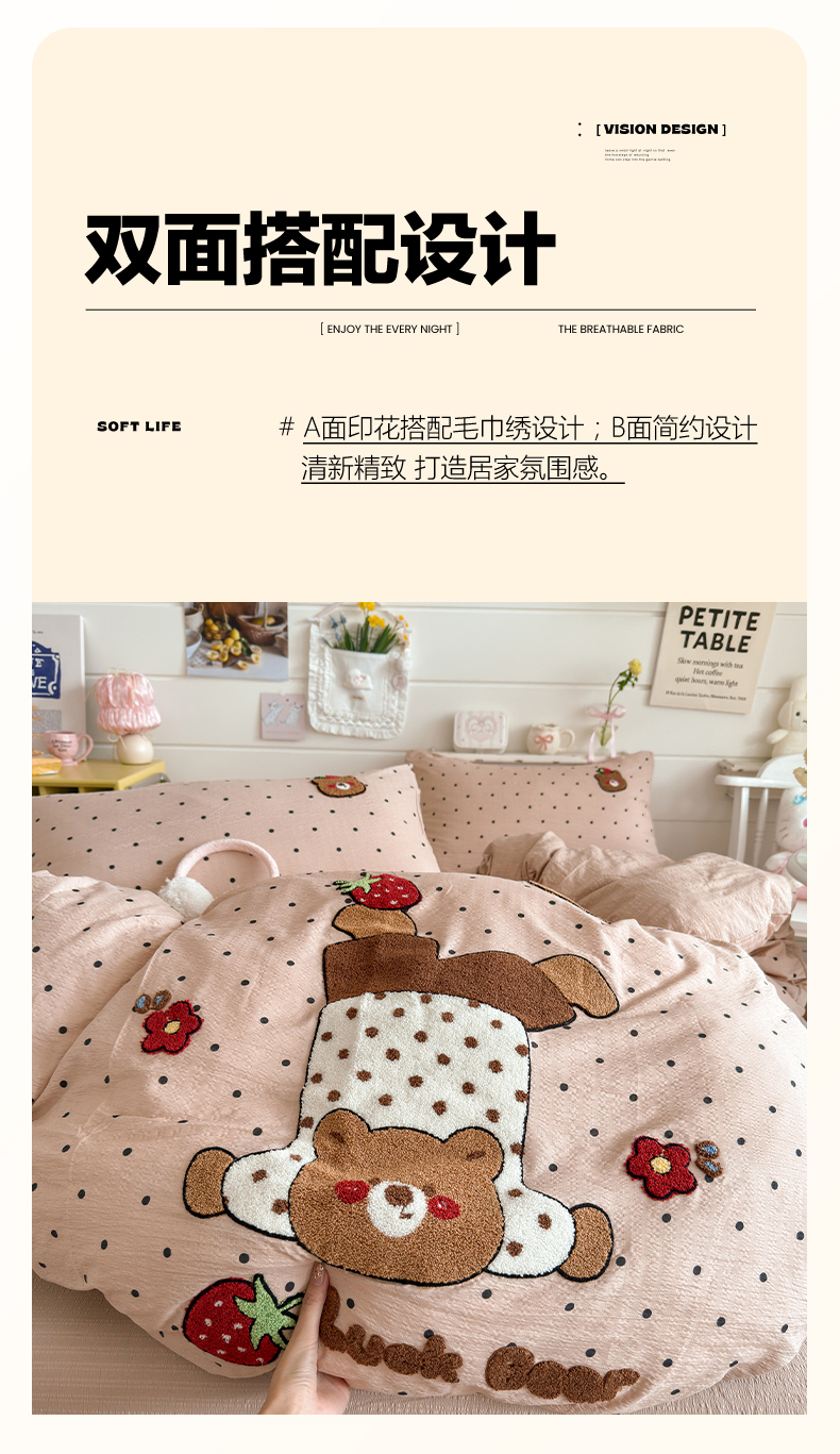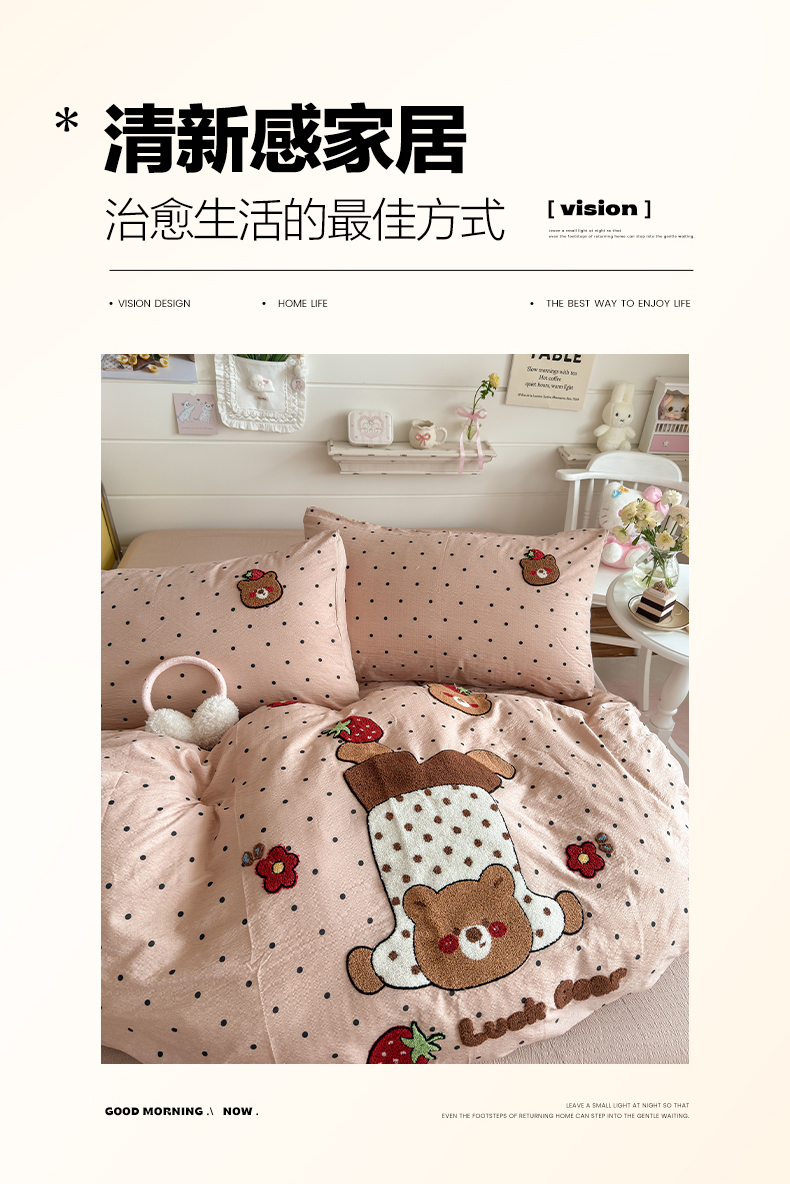 当前位置: 91家纺网 > 商品网购 > 床品套件 > 四件套 > 其它四件套 > 卡斯诺家纺馆 2026新款皱皱棉双层纱毛巾绣四件套(下载文件包含买家秀) 倒立熊