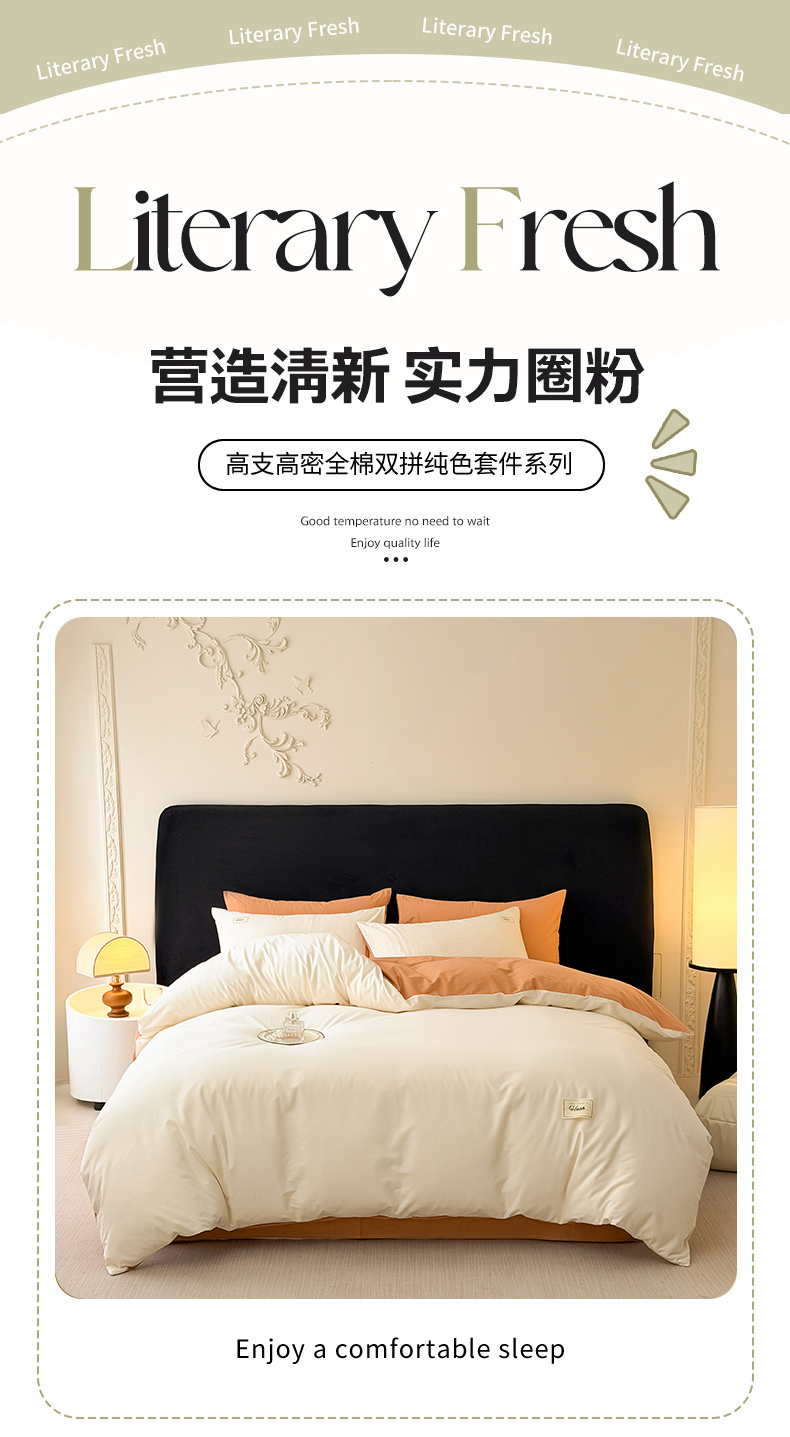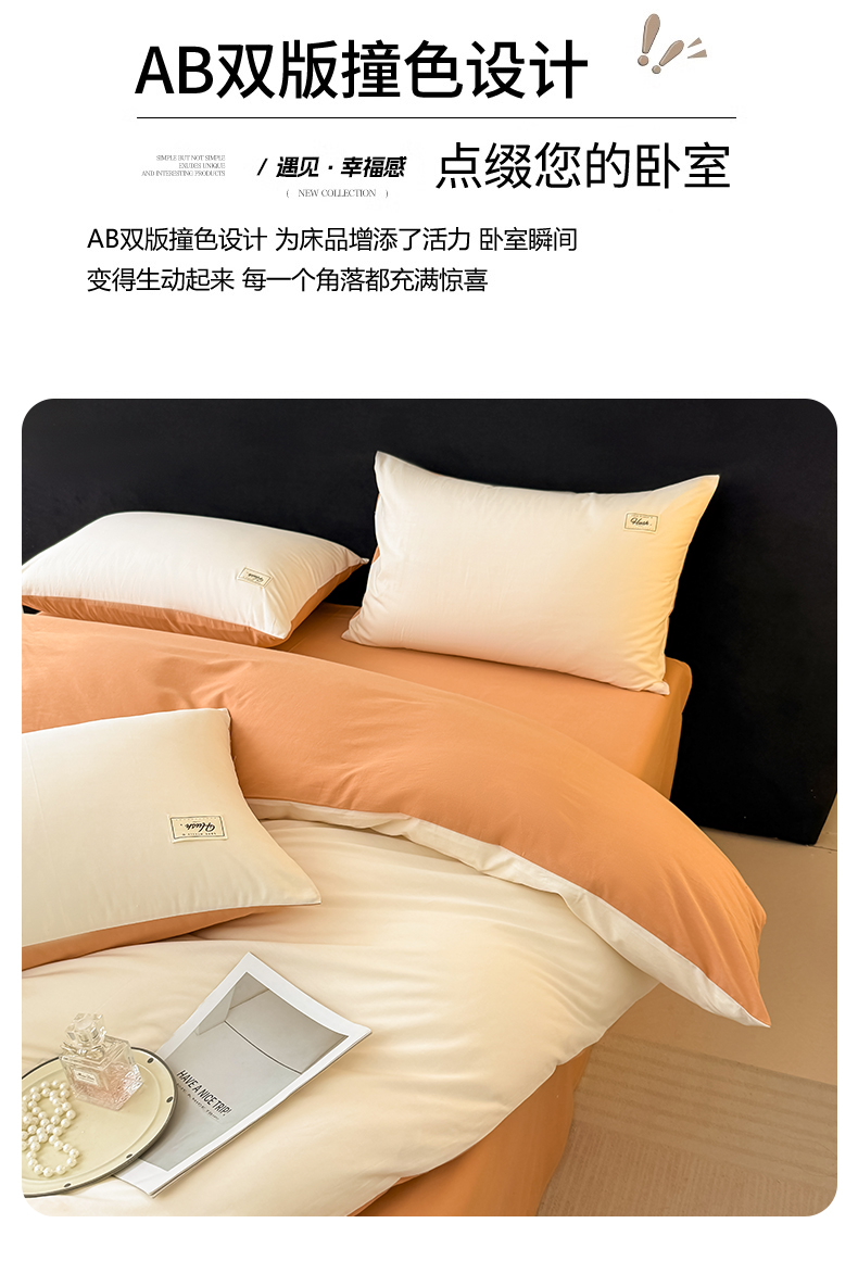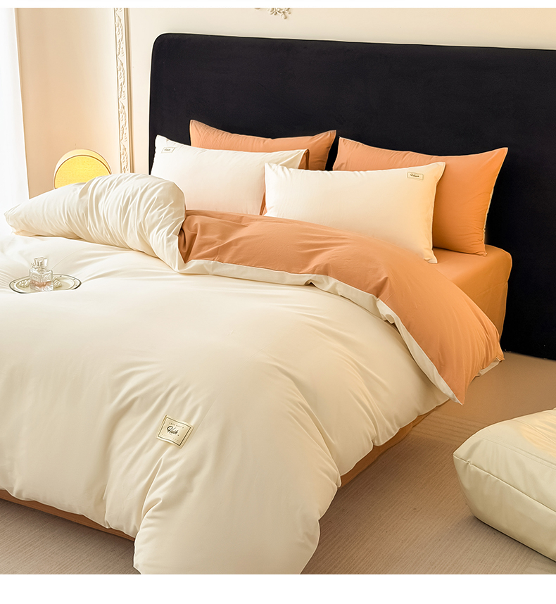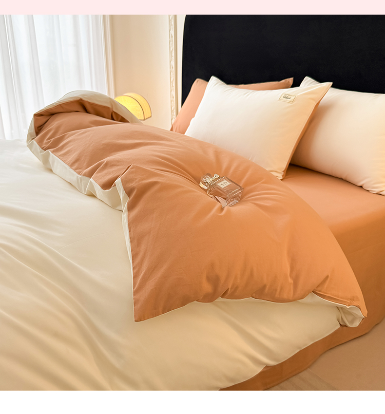 当前位置: 91家纺网 > 商品网购 > 床品套件 > 四件套 > 全棉普通四件套 > 木子家纺 2026新款高支高密全棉纯棉双拼纯色四件套 白桃西柚