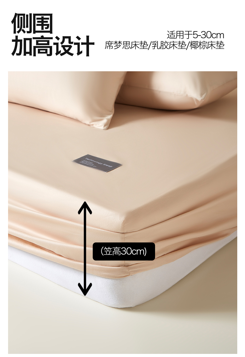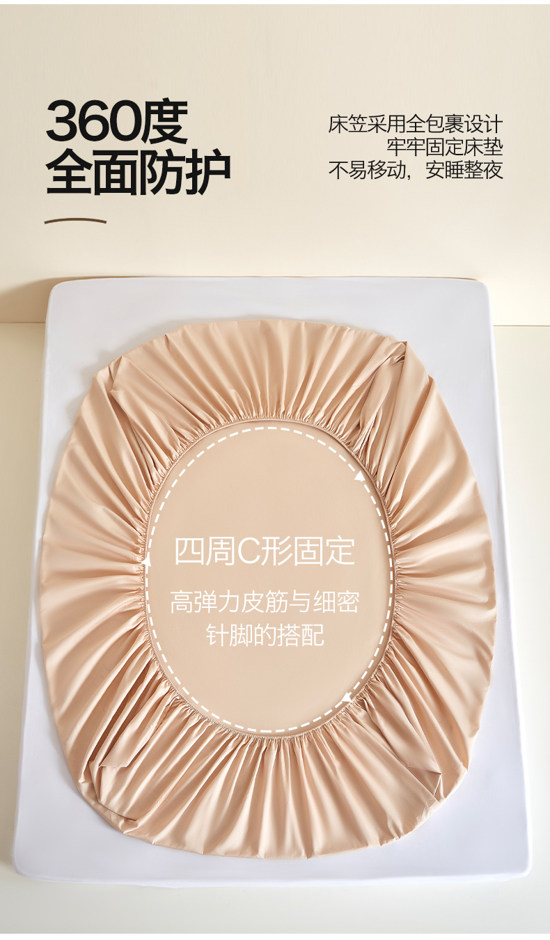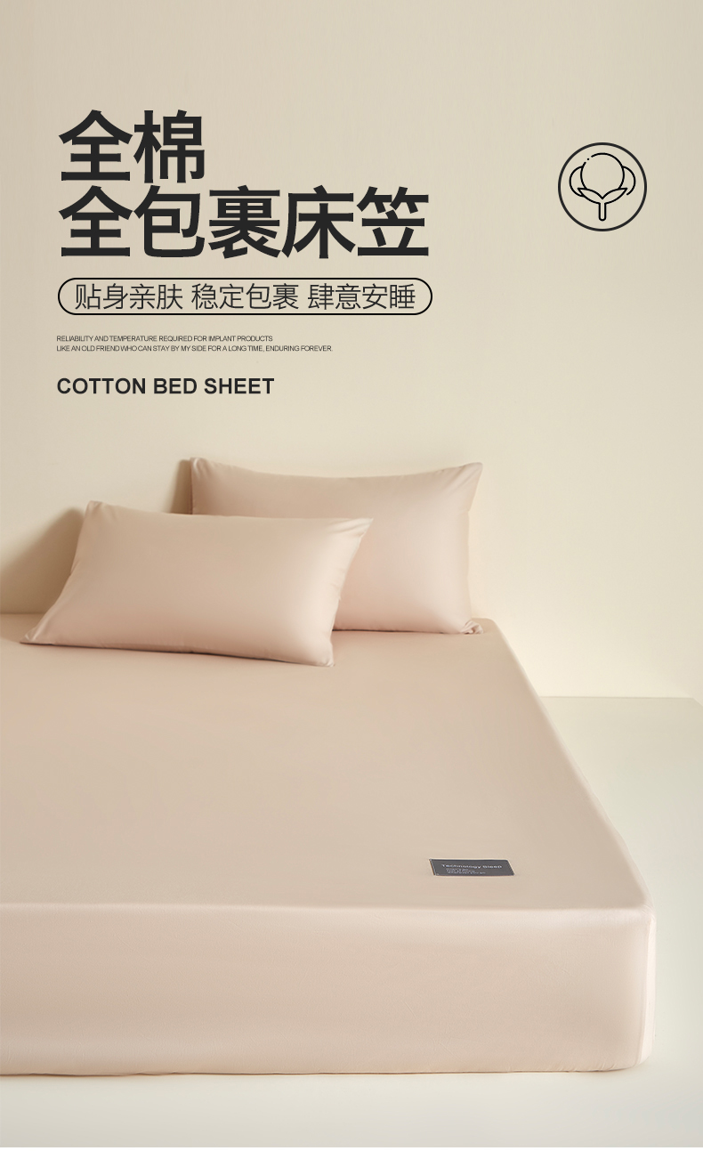 商品名称:女子家纺 2026新款贴身亲肤全棉全包裹纯色床笠 云影黄