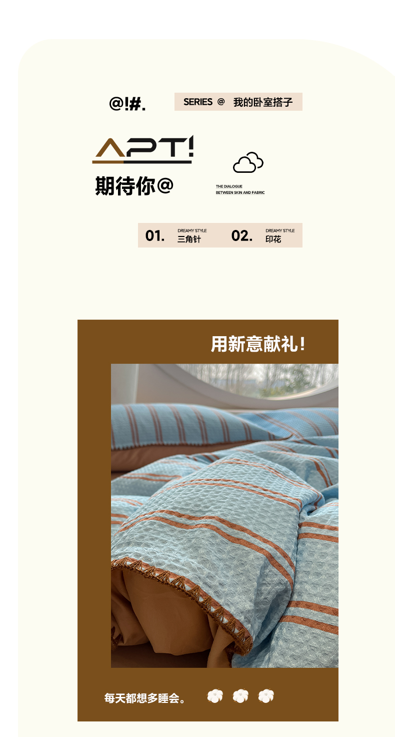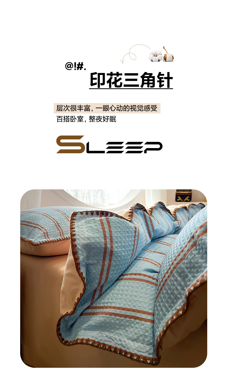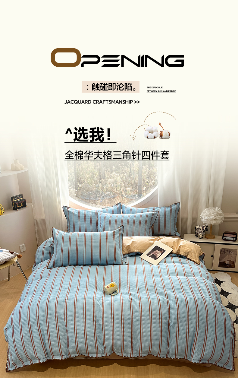 (总)如一 2026新款全棉华夫格三角针工艺四件套,彩心-紫,风月-蓝,风月-米,风月-紫,海盐-蓝,流光-蓝,泡芙-灰,柔然-粉,盛夏-绿