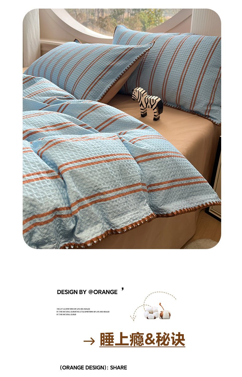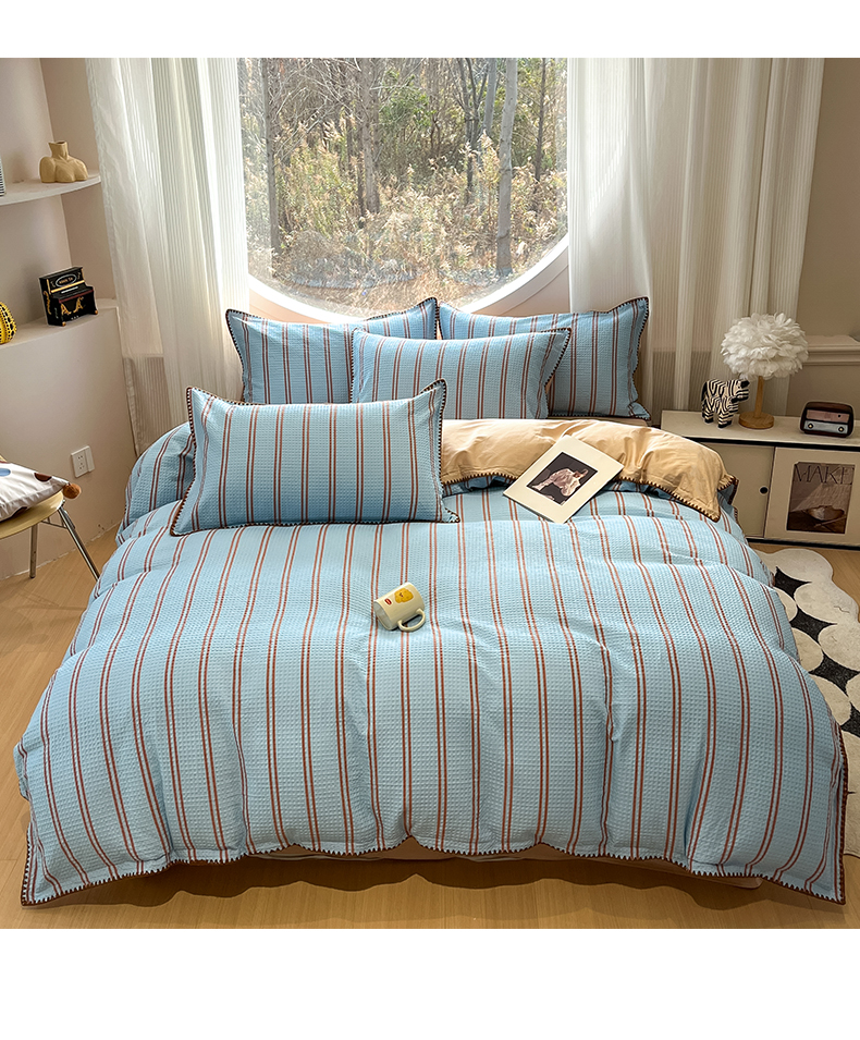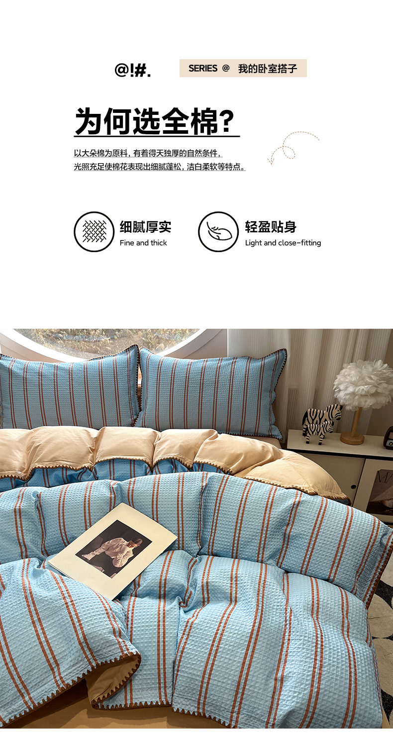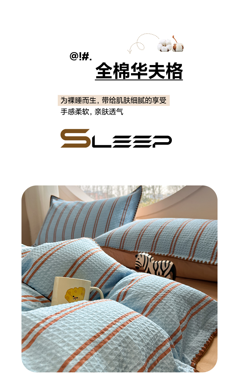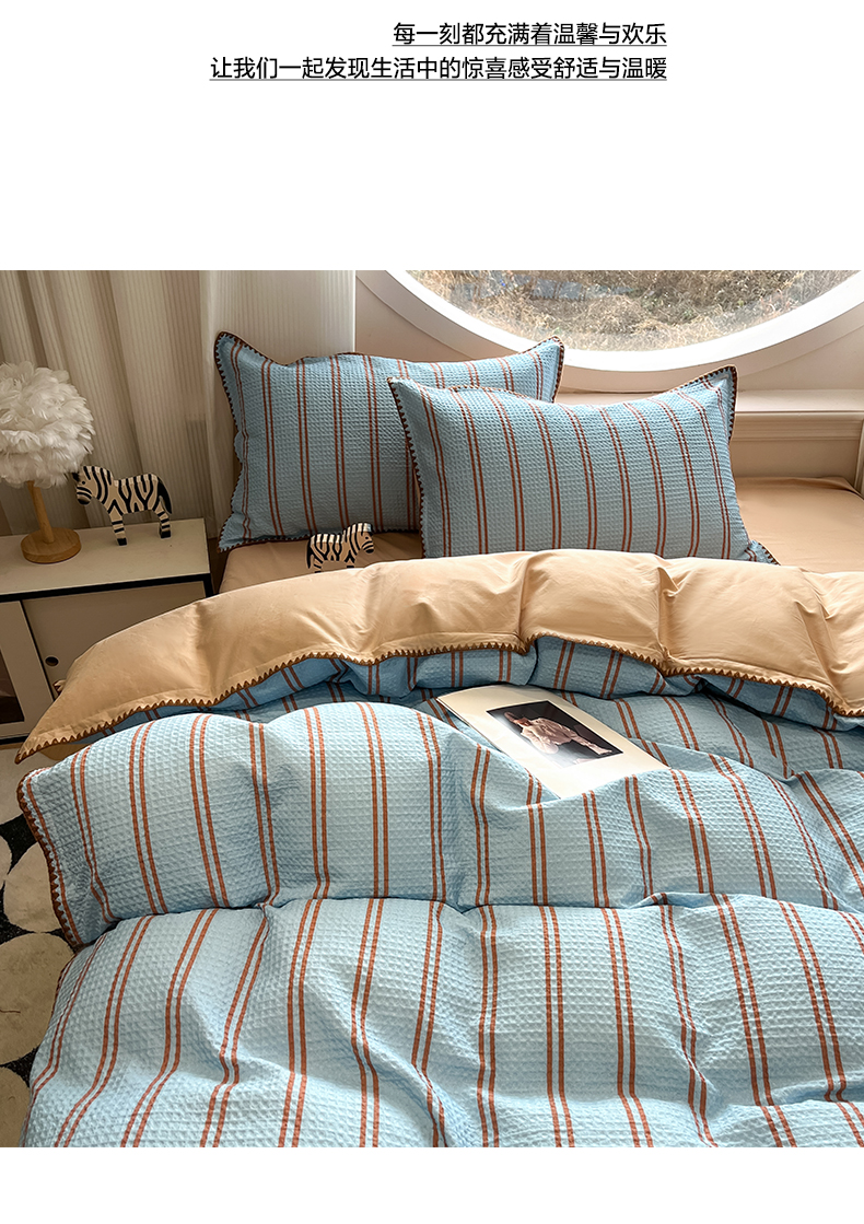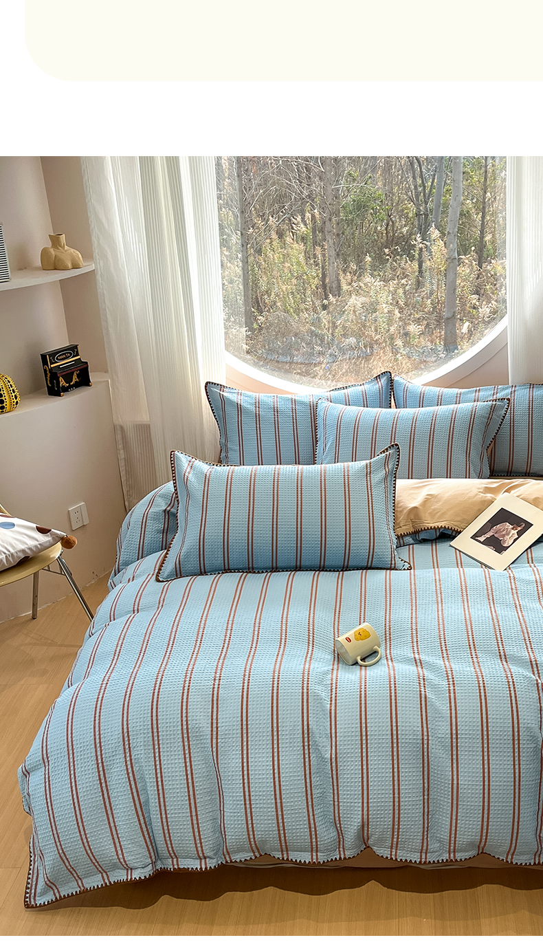 商品名称:如一 2026新款全棉华夫格三角针工艺四件套 风月-蓝