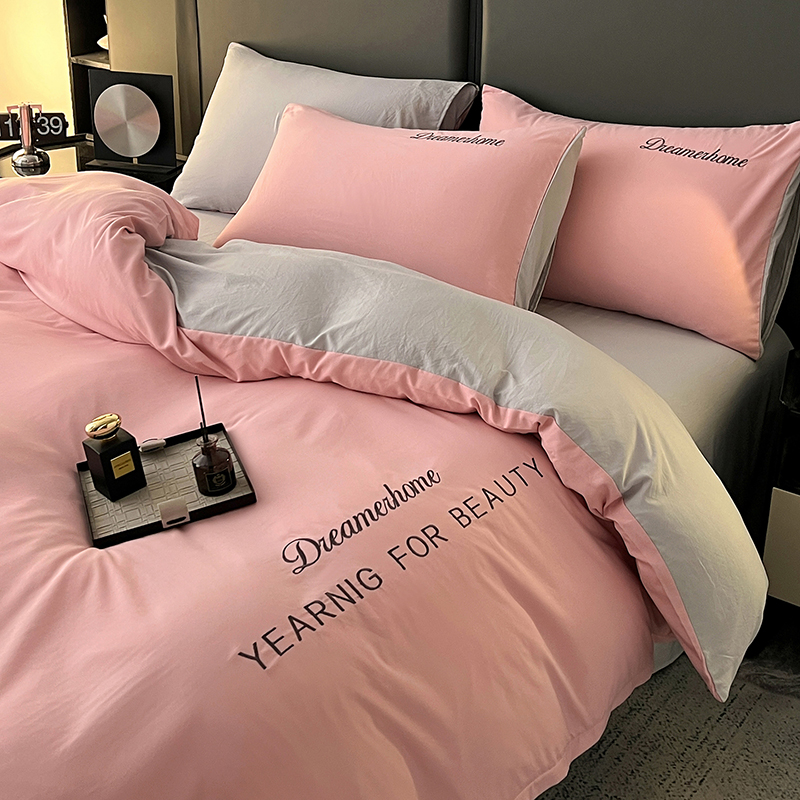 (总)鑫利来家纺 2026新款古法仿棉水洗棉刺绣四件套纯色双拼水洗云朵棉磨毛简约字母刺绣四件套,慕斯-宾利兰+山灰,慕斯-繁星蓝+天青,慕斯-海清+奶白,慕斯-海清+香叶粉,慕斯-豆沙+山灰,慕斯-粉+紫,慕斯-奶白+果绿,慕斯-奶白+中灰,慕斯-山灰+中灰