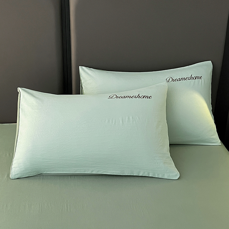 鑫利来家纺 2026新款古法仿棉水洗云朵棉刺绣单枕套纯色双拼水洗磨毛简约字母刺绣枕套 慕斯-海清+香叶粉