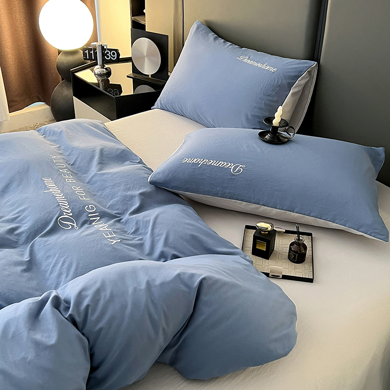 (总)鑫利来家纺 2026新款古法仿棉水洗棉刺绣四件套纯色双拼水洗云朵棉磨毛简约字母刺绣四件套,慕斯-宾利兰+山灰,慕斯-繁星蓝+天青,慕斯-海清+奶白,慕斯-海清+香叶粉,慕斯-豆沙+山灰,慕斯-粉+紫,慕斯-奶白+果绿,慕斯-奶白+中灰,慕斯-山灰+中灰